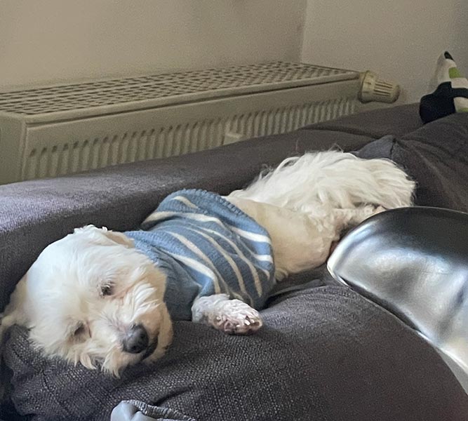So langsam taut sie auch auf und lernt ihre Umgebung in täglichen, ausgiebigen Spaziergängen immer besser kennen. Allerdings ist sie manchmal auch noch etwas ängstlich bei neuen Dingen . Achso und das Fell ist ab, aber keine Sorge, ich lasse es wieder wachsen.