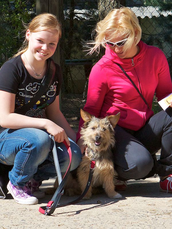 In seiner neuen Familie in Brandenburg gibt es Kinder, die mit ihm toben. Aber er darf auch mit, wenn sein Frauchen zu den Fitness- und Tanzkursen fährt, die sie unterrichtet.