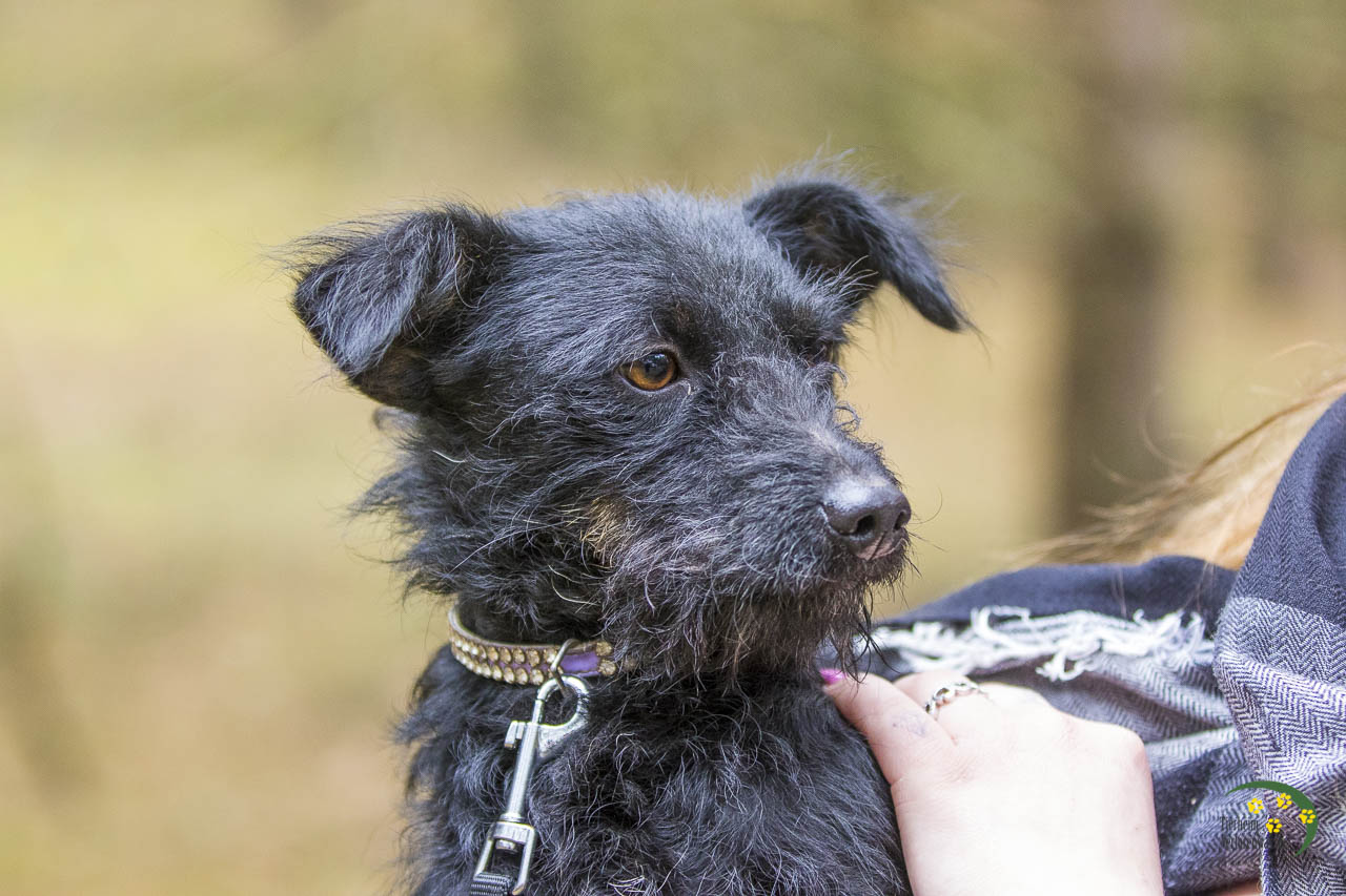 Hilde sieht ein wenig nach einem Schnauzer-Mix aus. Mit ihren gerade mal 8 kg ist sie aber eher die Zwergausgabe.