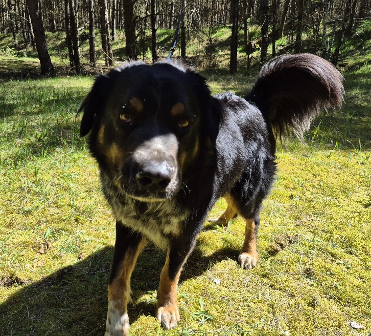 Allerdings muss man standfest sein, denn mit seinen 40 kg hat er einiges an Kraft zu bieten, wenn er seine stürmischen Liebesbeweise verteilt.