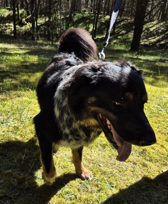 An der Leine läuft er schon sehr gut, nur am Alleinbleiben muss noch gearbeitet werden.