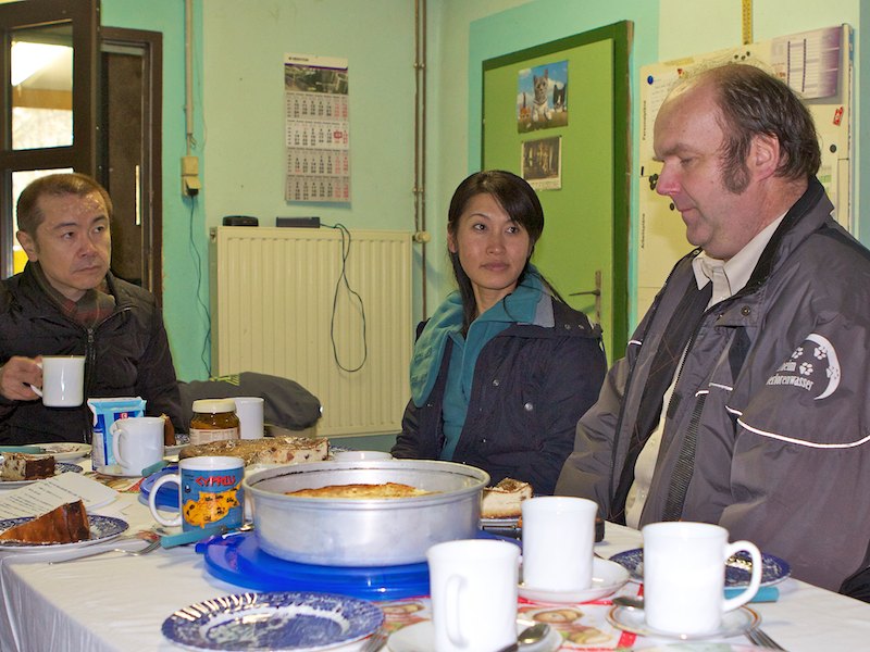 Nach einem ausführlichen Rundgang durch das Tierheim Verlorenwasser saßen dann alle beim Käsekuchen zusammen und diskutierten angeregt. Frau Alscher leistete dabei wertvolle Übersetzungsdienste.