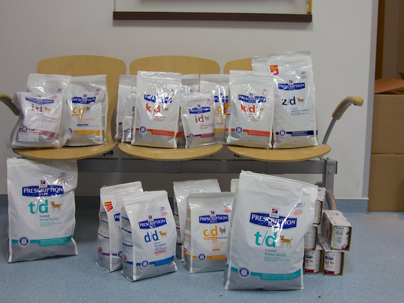 Wir hatten das große Glück, in Wildau und Teltow Futter abholen zu dürfen. Darunter befand sich Spezialnahrung für Tiere mit Nierenschäden, Hautproblemen oder auch Erkrankungen des Magen-Darm-Traktes.