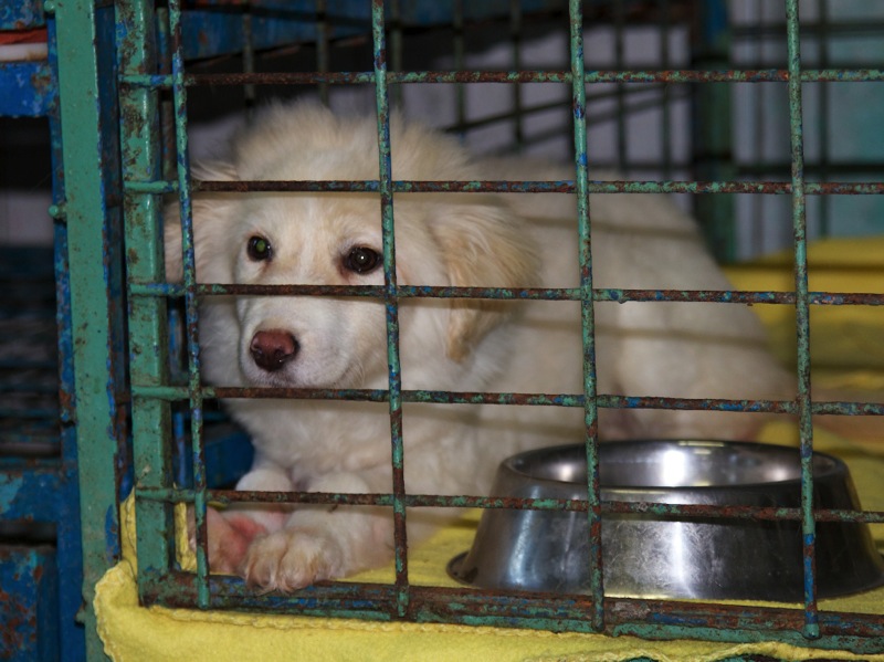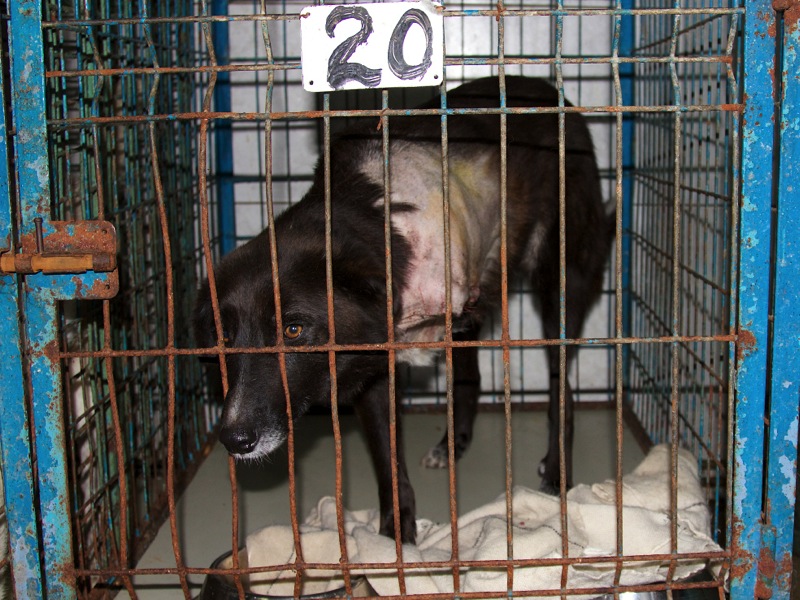 In einem weiteren Raum waren Quarantäne-Boxen - sowohl mit Katzen als auch Hunden (fast ausschließlich Welpen). Leider hatte es ein Welpe nicht geschafft, er hatte den Kampf um sein Leben verloren - wie so viele andere schon zuvor.