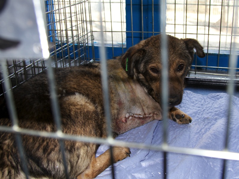 Dann kamen wir in den Teil, in dem die relativ frisch verarzteten Hunde untergebracht sind. Der Gestank war kaum auszuhalten.