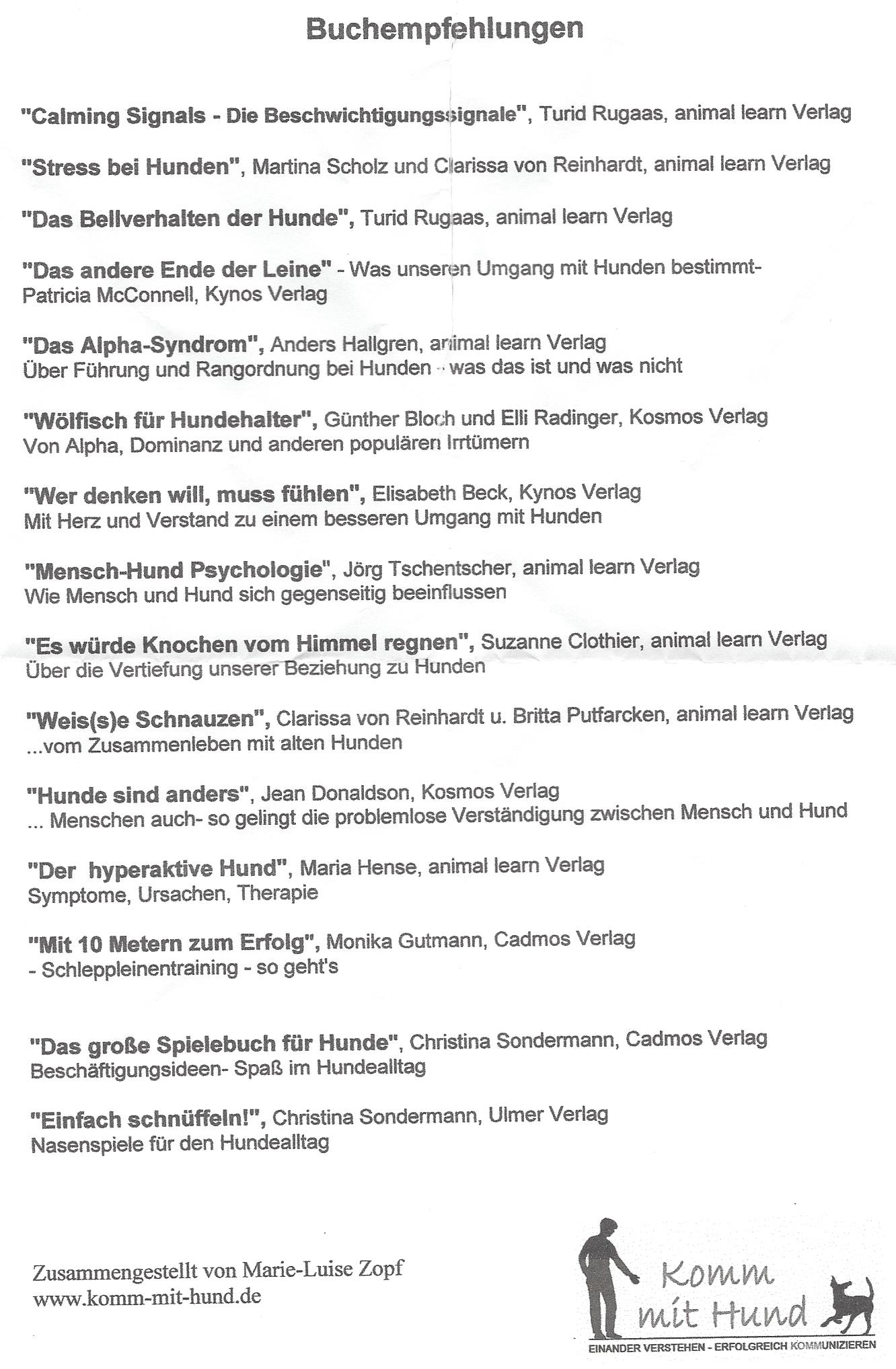 Wie man sieht, kam Frau Zopf gut vorbereitet und hatte auch empfehlenswerte Literatur zur Ansicht dabei, so dass jeder Teilnehmer wertvolle Tipps zum Nachlesen für die weitere Arbeit mit seinem Liebling erhielt.
