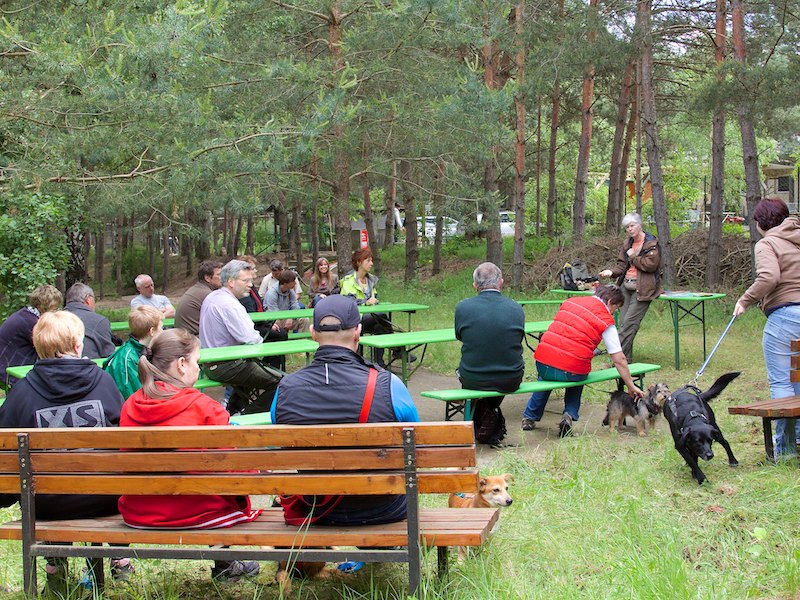 Marie-Luise Zopf aus Berlin-Zehlendorf von der Hundeschule Komm-mit-Hund beantwortete Fragen. Natürlich durften Themen wie "Halsband oder Geschirr?", "Leinenruck - vertretbar oder schon Tierquälerei?", "Zweithund - ja oder nein?" nicht fehlen.