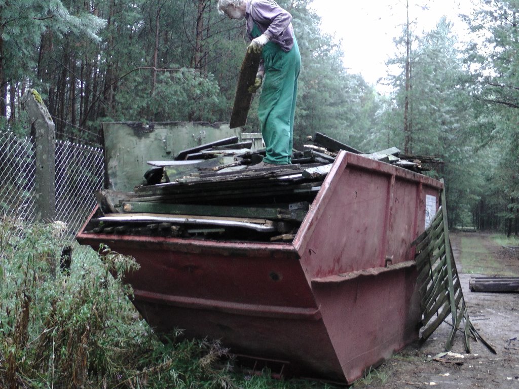 S3180044Einer der beiden Container, die wir bestellt hatten, ist schon voll. Wir haben einen alten Bauwagen zerlegt und zusammen mit anderen alten Holzabfällen den ersten Container gefüllt. Er wird morgen abgeholt und gegen einen leeren getauscht, denn für Sonntag (23.08.) ist noch so viel zu tun.