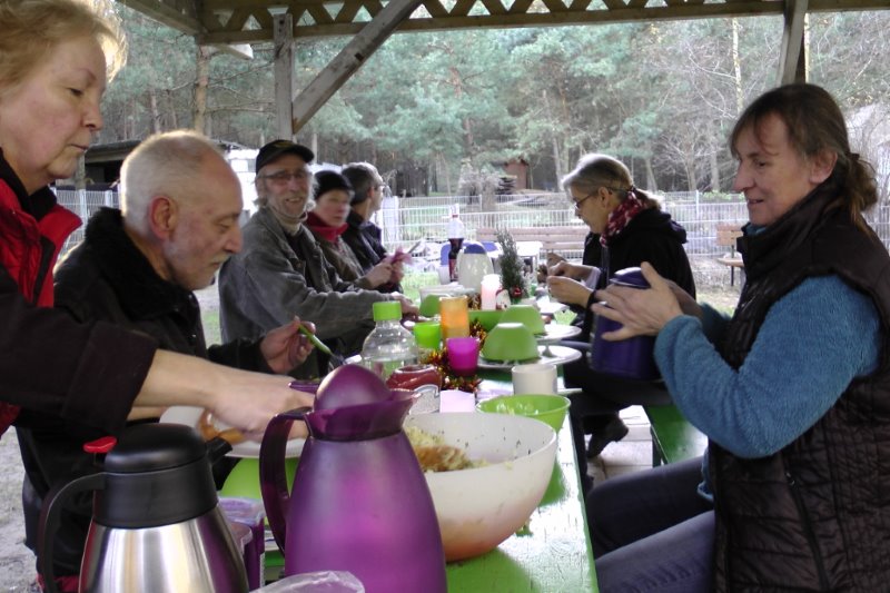 Eine Tierfreundin reiste aus Berlin an und half beim Reinigen des Katzenhauses. Sie brachte - wie schon öfter - leckeres Essen mit, so dass auch mal eine gemeinsame Pause möglich war. Das ist bei uns selten genug der Fall.