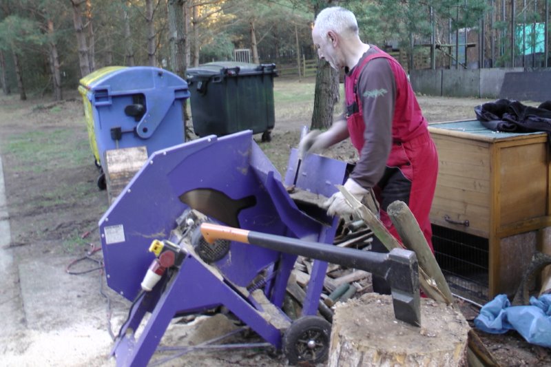 Ein Ehrenamtler spaltete Holz im Akkord. Gassigeher kamen aus Berlin und brachten auch noch Spenden mit.
