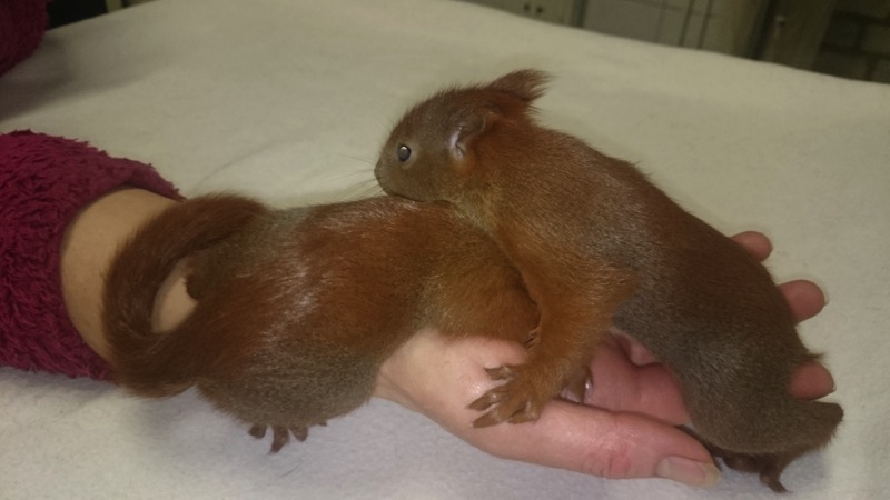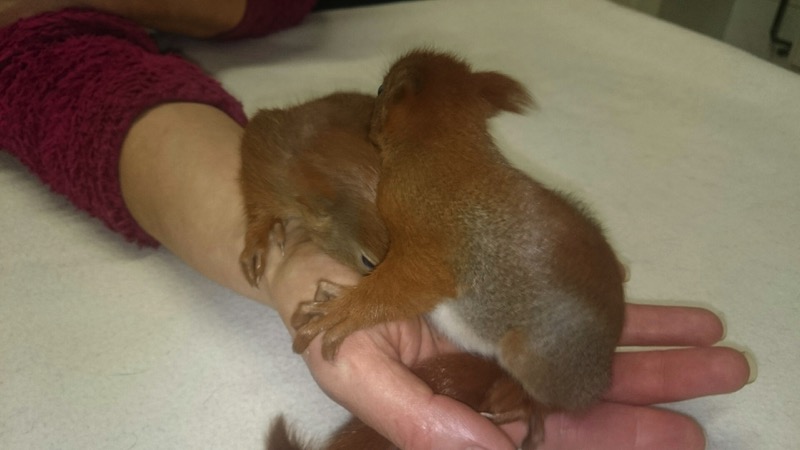 Wer hilflose Eichhörnchen findet (zu klein, unterkühlt oder verletzt) kann sie jederzeit zu uns bringen. Wichtig ist, die Umgebung abzusuchen, denn oft ist das Nest durch Unwetter oder Krähen zerstört und alle Eichhörnchen der Familie sind zu Boden gestürzt. Deshalb sollte man auch in Hecken oder Laub gründlich nach Geschwistern suchen.