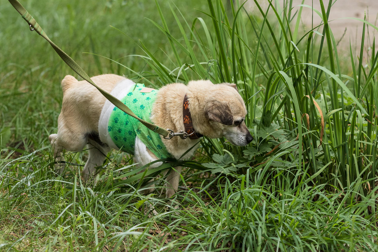 Jim KnopfZwei Gassigänger trafen auf dem Rückweg am Tor aufeinander. Der größere Hund fackelte nicht lange und nahm sich Jim Knopf vor. Ein richtig langer Riss in der Seite war das Ergebnis. Zum Glück ging die Wunde nicht bis zur Lunge durch. Mit Klammern konnte alles gerichtet werden.