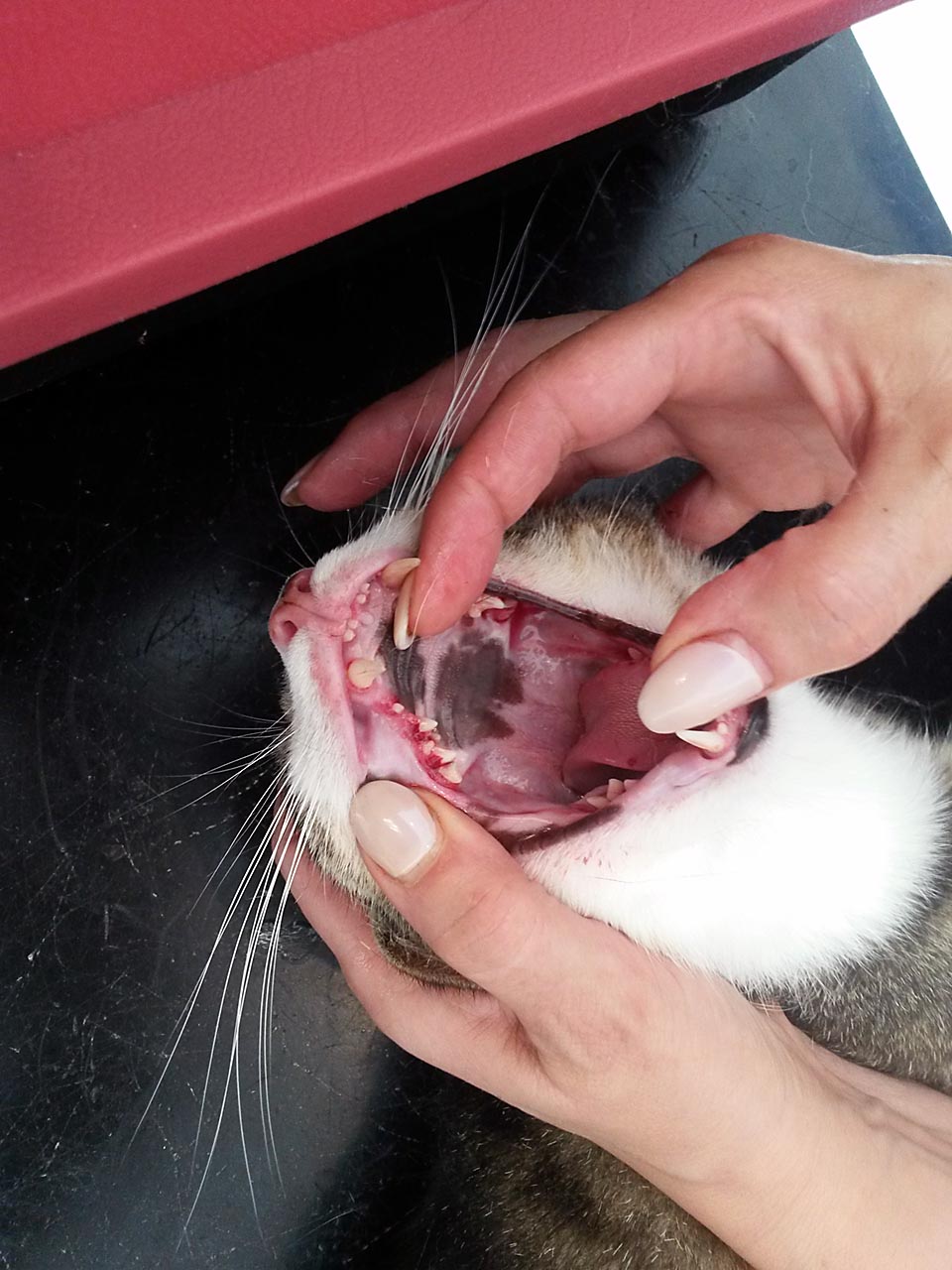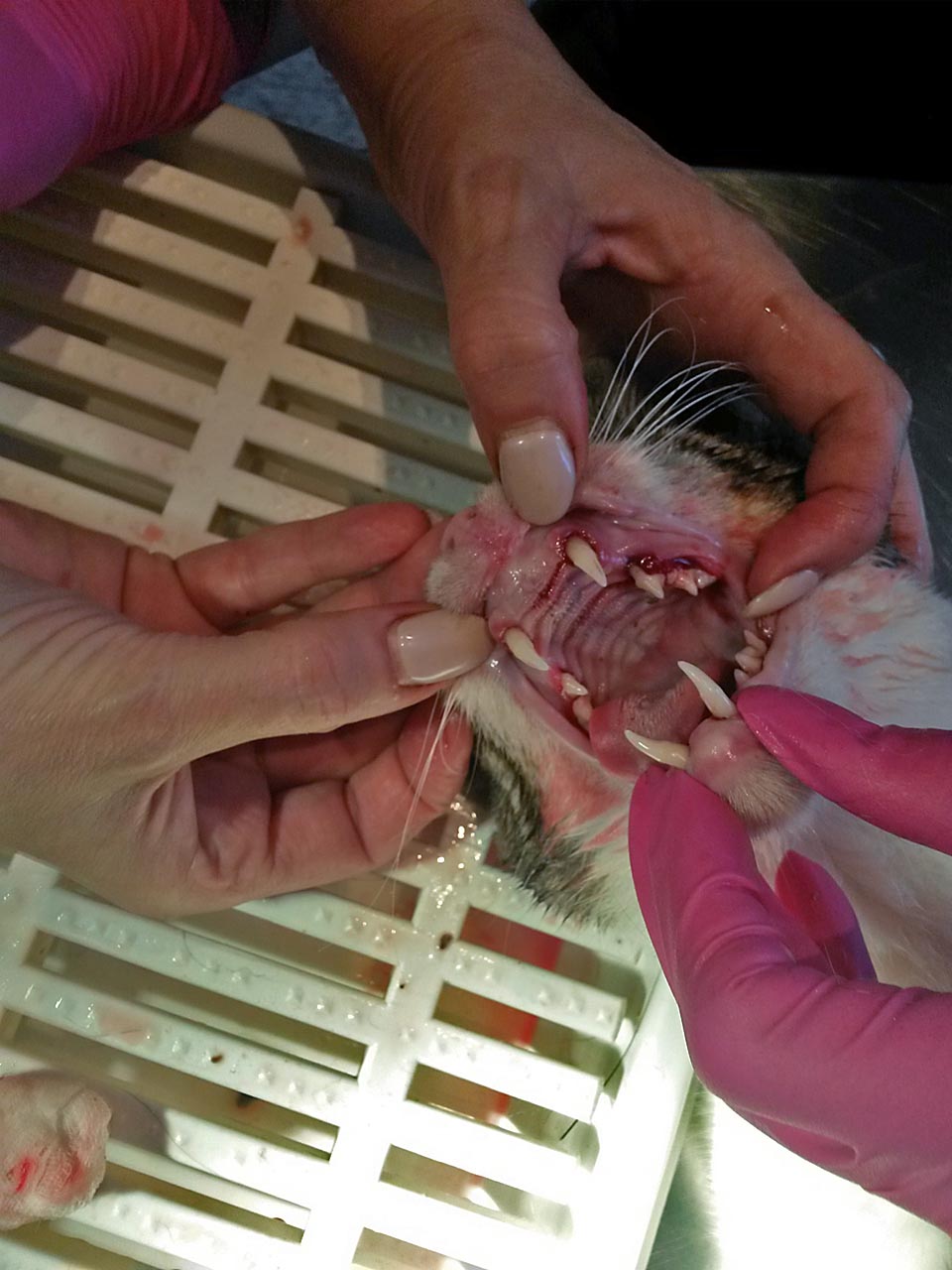 Wieder stellten wir einen größeren Transport mit unseren Tieren zusammen - 11 Katzen und 4 Hunde - mit dem Verdacht, da könne etwas sein. Und tatsächlich: bis auf zwei Katzen, die nur Zahnstein hatten, gab es bei allen anderen Probleme.