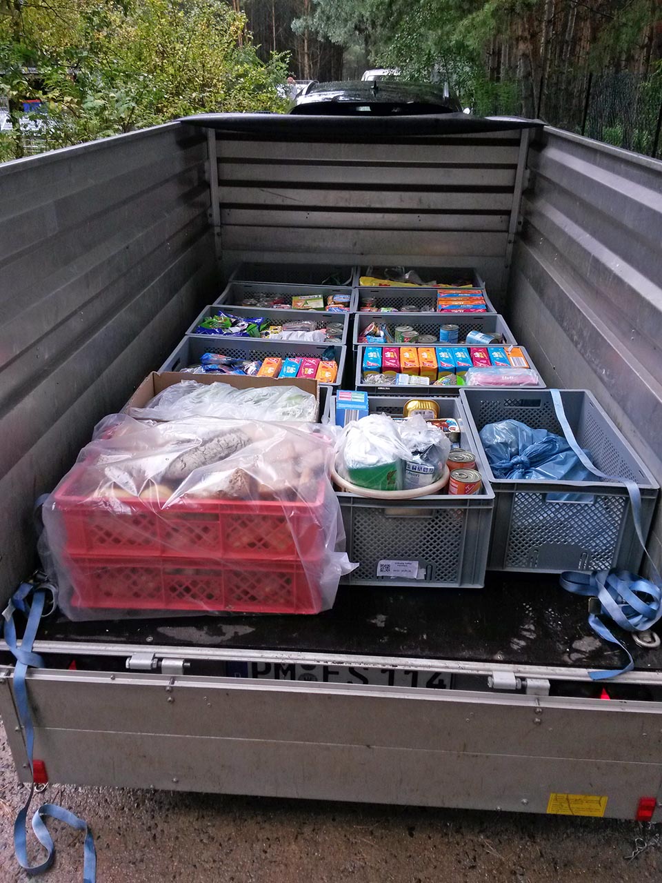 Die netten Mitarbeiter von  Edeka aus Beelitz brachten einen großen Anhänger voller guter Dinge. Der Futttersammelcontainer, in den Kunden eine Spende für uns werfen, wurde geleert und noch durch Edeka-Beelitz aufgestockt.