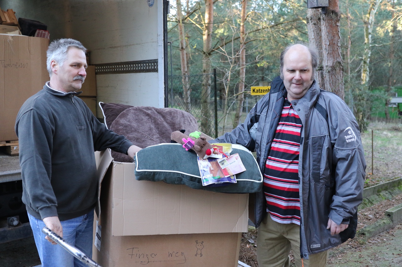 UND: Dann war da ja noch der LKW. Von Berliner Geschäften hatte unser Tierheimleiter ebenfalls reichlich Spenden abholen dürfen.