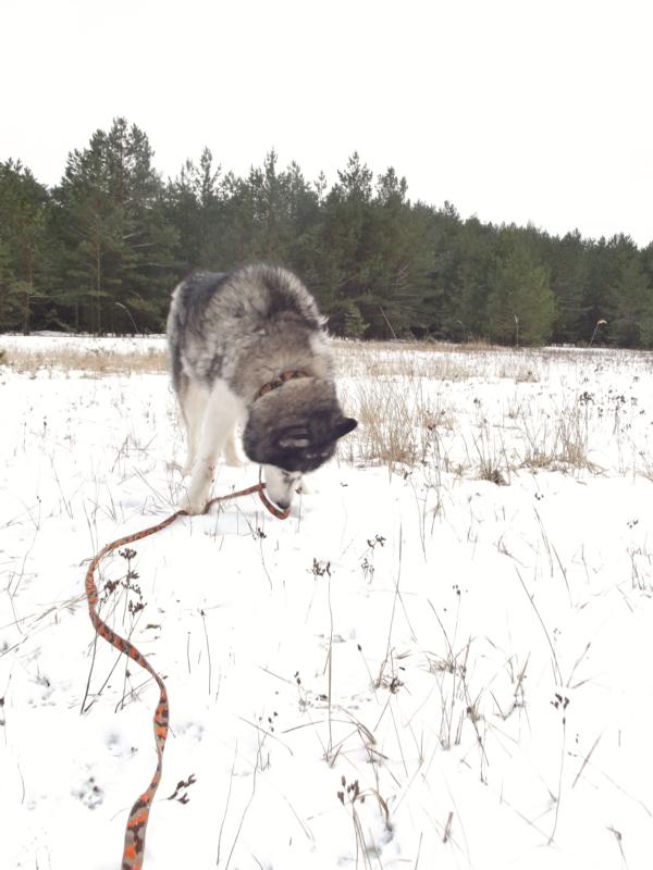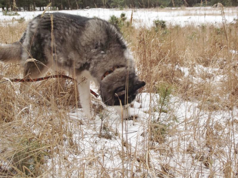 Aber die Lebensfreude ist noch da und ein Spaziergang im frisch gefallenen Schnee natürlich eine Freude für einen Nordischen.