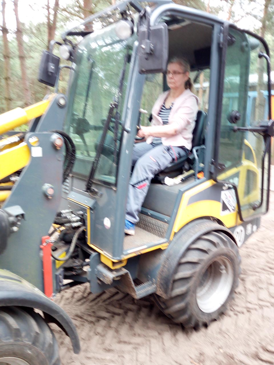 Natürlich haben sich alle der Aufgabe gestellt, denn wie so oft im Leben gilt auch beim Führen eines Radladers: man kann alles lernen. Und so waren auch nur die ersten paar Meter ungewohnt. Dann ging alles wunderbar und alle hatten ihren Spaß.