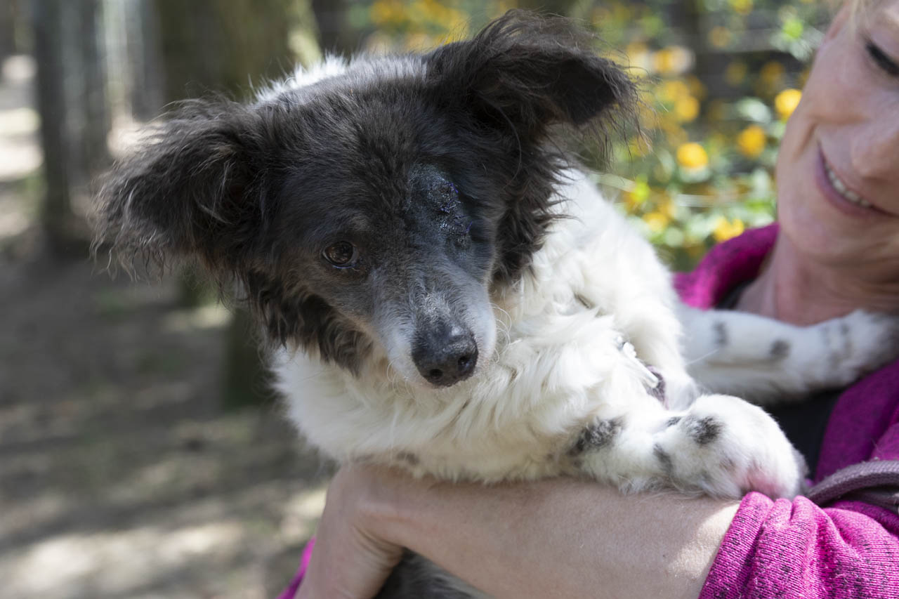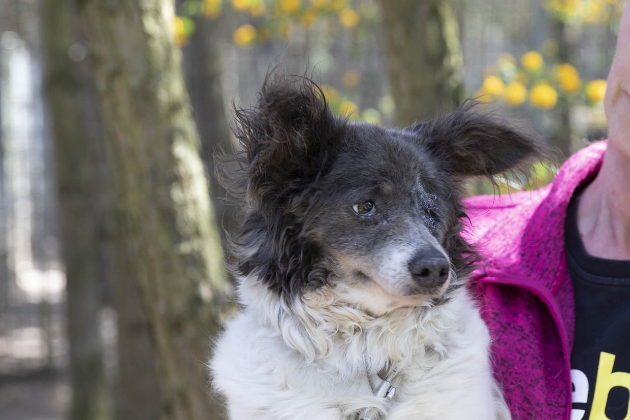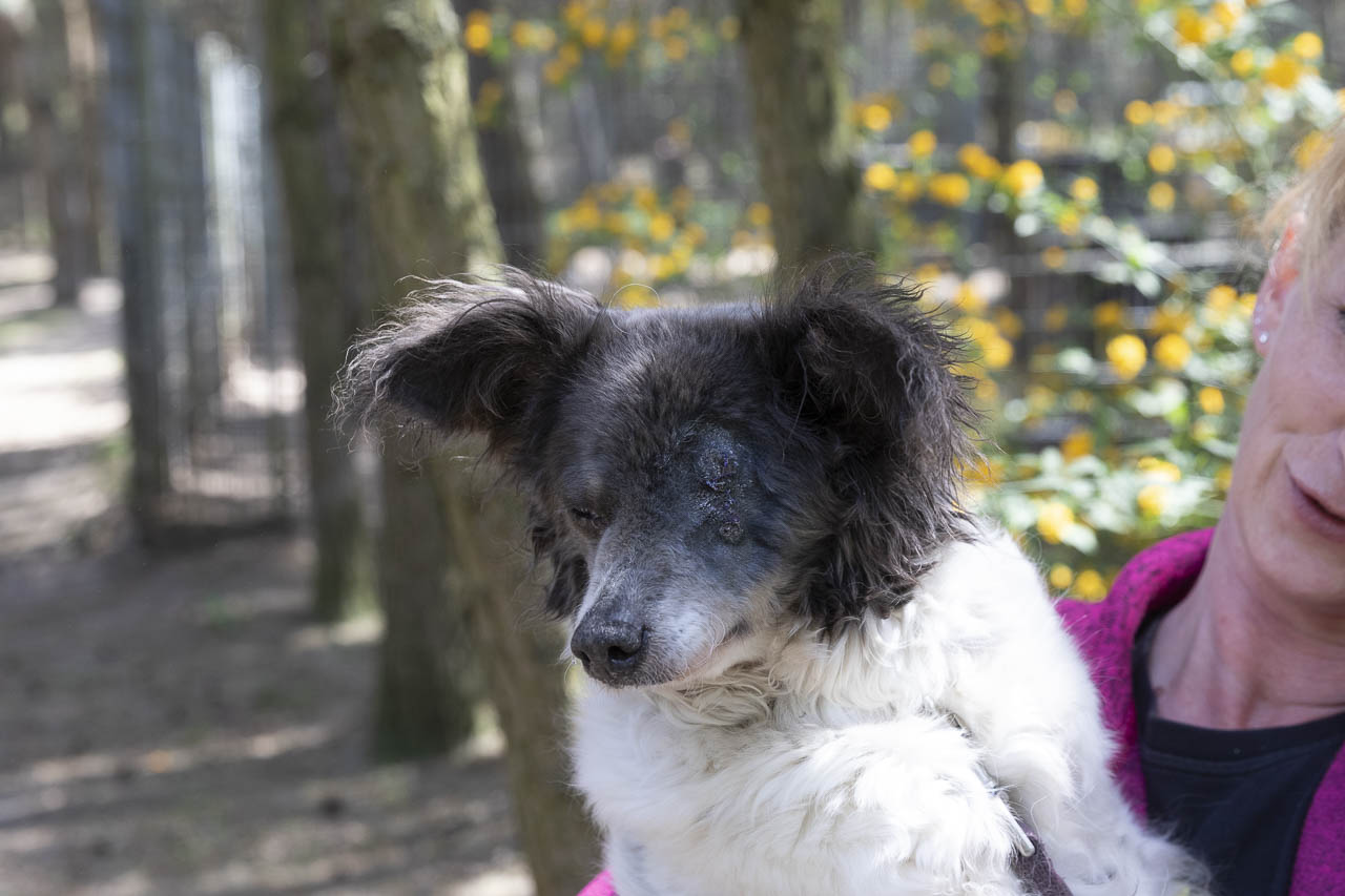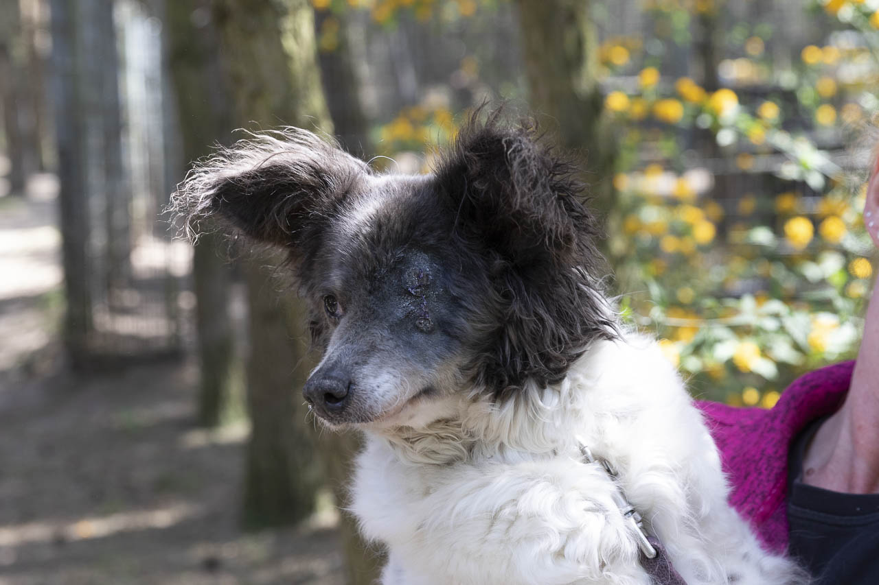 Als wir sie aufnahmen, hatte sie ein kaputtes Auge, das wahrscheinlich auch schmerzte. Unsere Tierärztin war sich zunächst nicht sicher, ob die Augenreste in der Augenhöhle doch noch soviel hergaben, dass man etwas für das Sehvermögen hätte tun können.