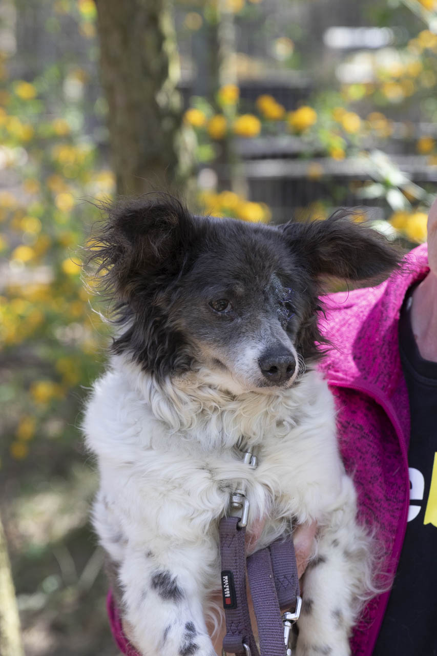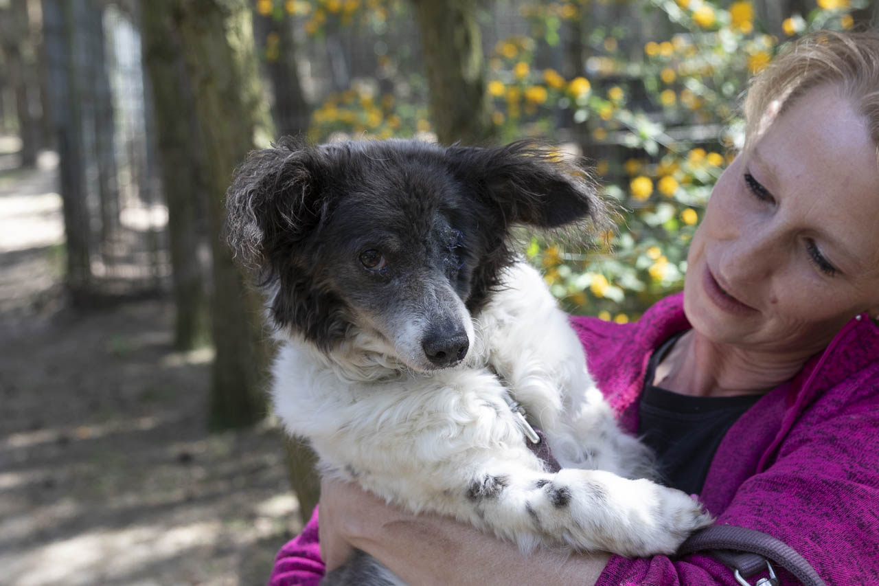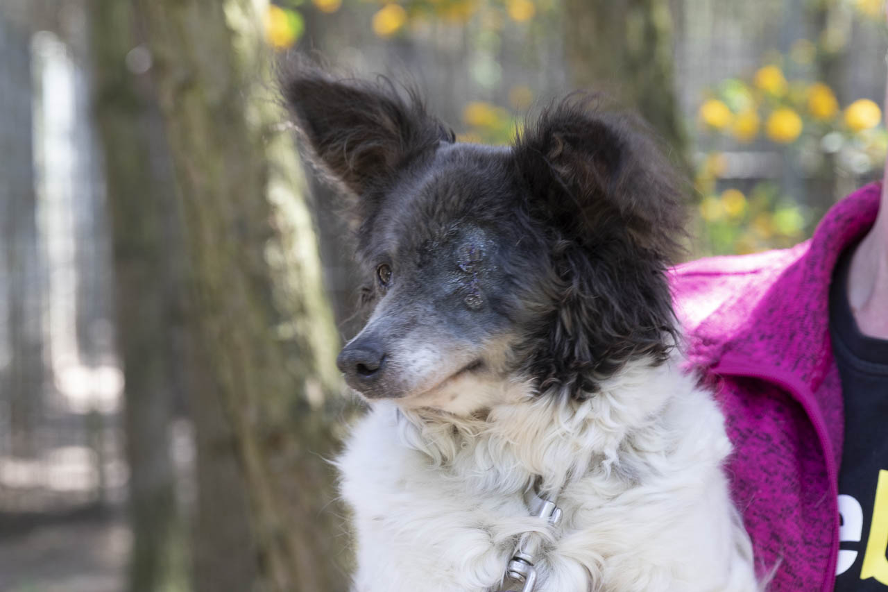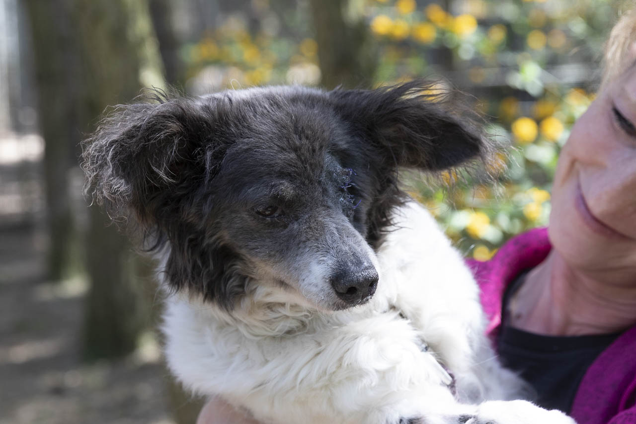 Als wir sie aufnahmen, hatte sie ein kaputtes Auge, das wahrscheinlich auch schmerzte. Unsere Tierärztin war sich zunächst nicht sicher, ob die Augenreste in der Augenhöhle doch noch soviel hergaben, dass man etwas für das Sehvermögen hätte tun können.