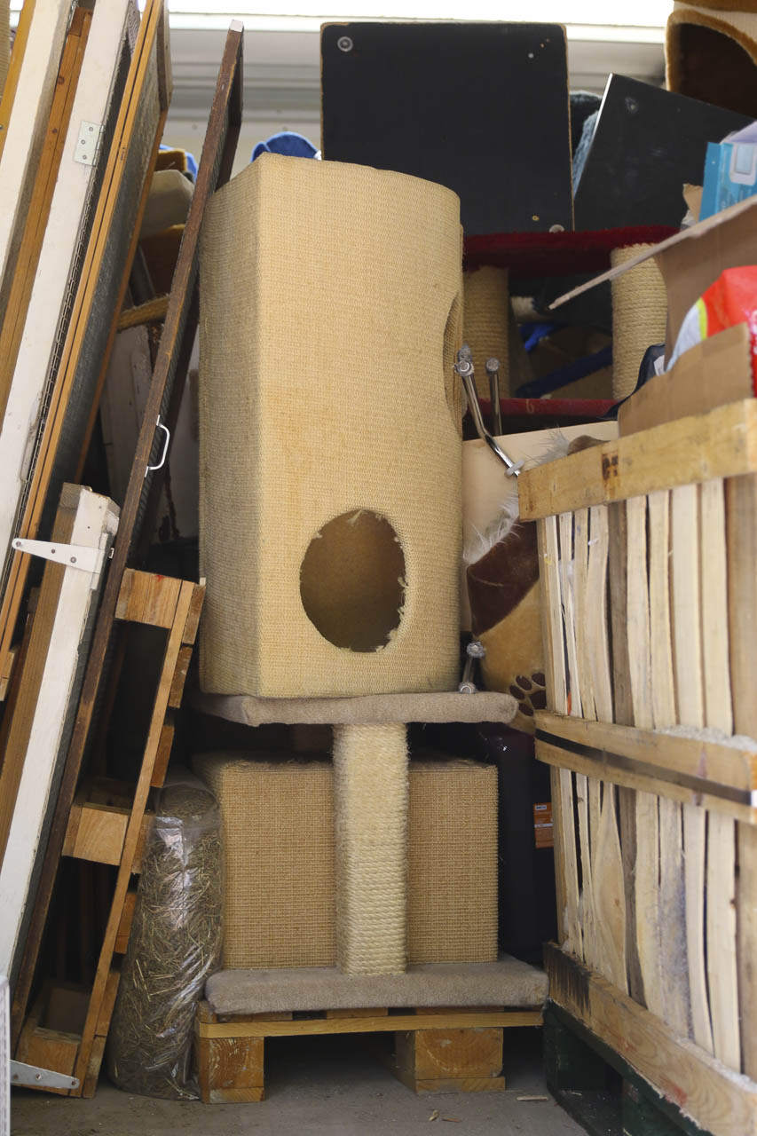 Und am nächsten Tag fuhr er dann noch zu lieben Tierfreunden nach Berlin, die ihren Verein auflösen. Auch dort durften wir uns nehmen, was wir wollten: Kratzbäume, Körbchen, Transportboxen, Gehegeteile ... Der LKW füllte sich.