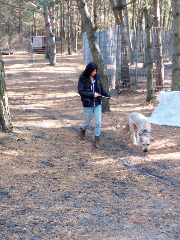 Mit einigen Hunden, die bei uns als verhaltensauffällig abgegeben worden waren, nahm er zunächst einmal Kontakt auf und setzte sich vor den Zwinger. Nach einem ausführlichen Gespräch von "Mann zu Mann", das durchaus schweigend verlaufen kann, war dann die erste Vertrauensbasis geschaffen und es ging entspannt auf Gassi.