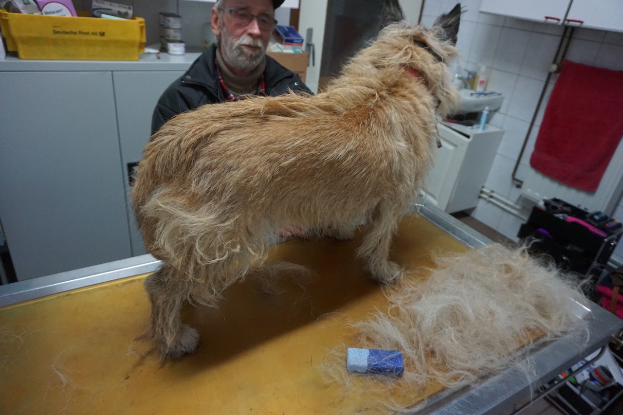 Da bei diesen Temperaturen eine Schur natürlich nicht infrage kommt, musste Denise mit Kamm und Schere klarkommen. Das Ergebnis ist beeindruckend. Rex, Hasso, Klein Rexi, Buddy und die anderen sind nun wieder wunderhübsch. Schauen Sie selbst: