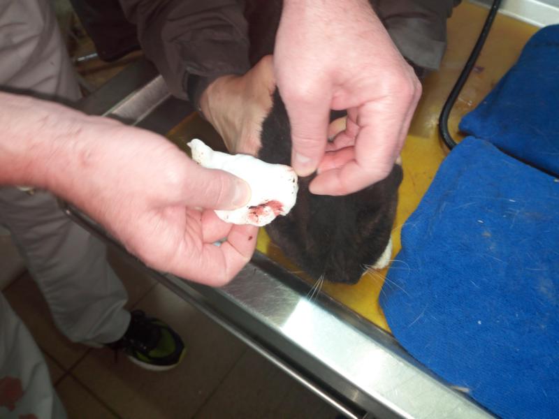 Was auf den Fotos aussieht wie eine Nudel im Ohr, ist eine Drainage, damit nach der OP Wundsekret abfließen kann. Das muss natürlich überwacht werden. Unsere Tierpfleger hatten also auch nach den Operationen alle Hände voll zu tun.