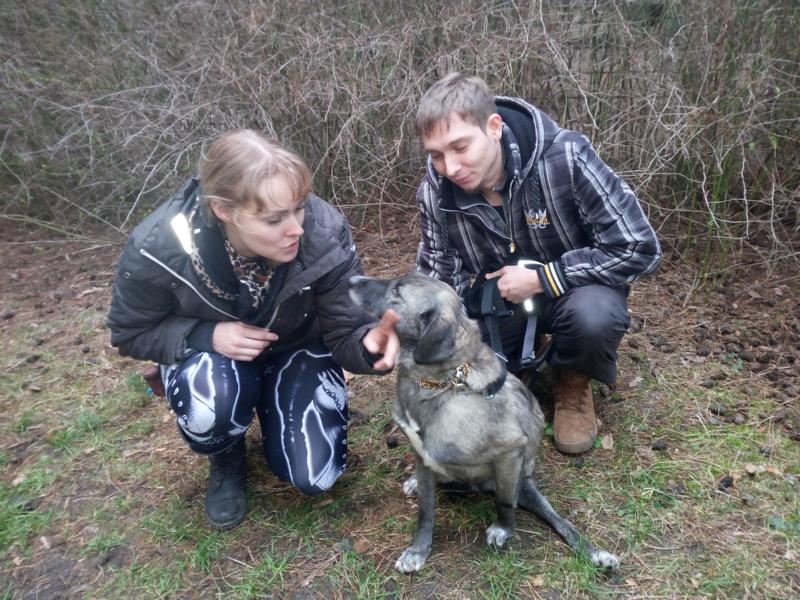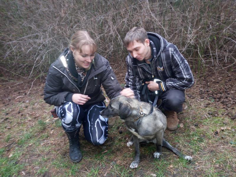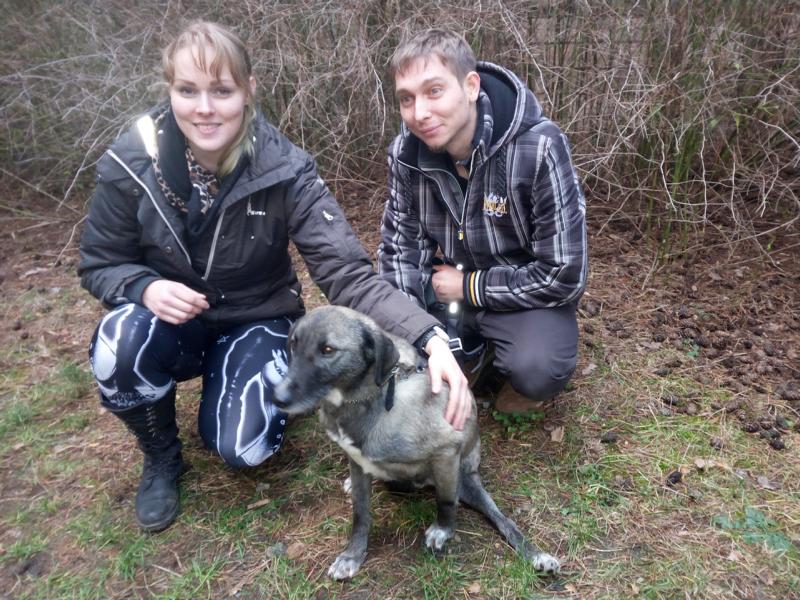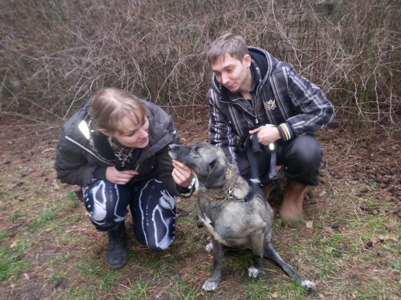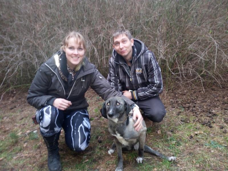 Damit während des mehrstündigen Fernsehdrehs die Arbeiten für unsere Tiere nicht auf der Strecke blieben, waren ehrenamtliche Helfer zur Verstärkung unseres Teams gekommen. Ein nettes junges Pärchen, das bereits einen Hund von uns adoptiert hat, beschäftigte sich an dem Tag u.a. auch mit den beiden Handicap-Hunden. Bei Fight und den jungen Leuten schlug der „Blitz“ ein: Liebe auf den ersten Blick!