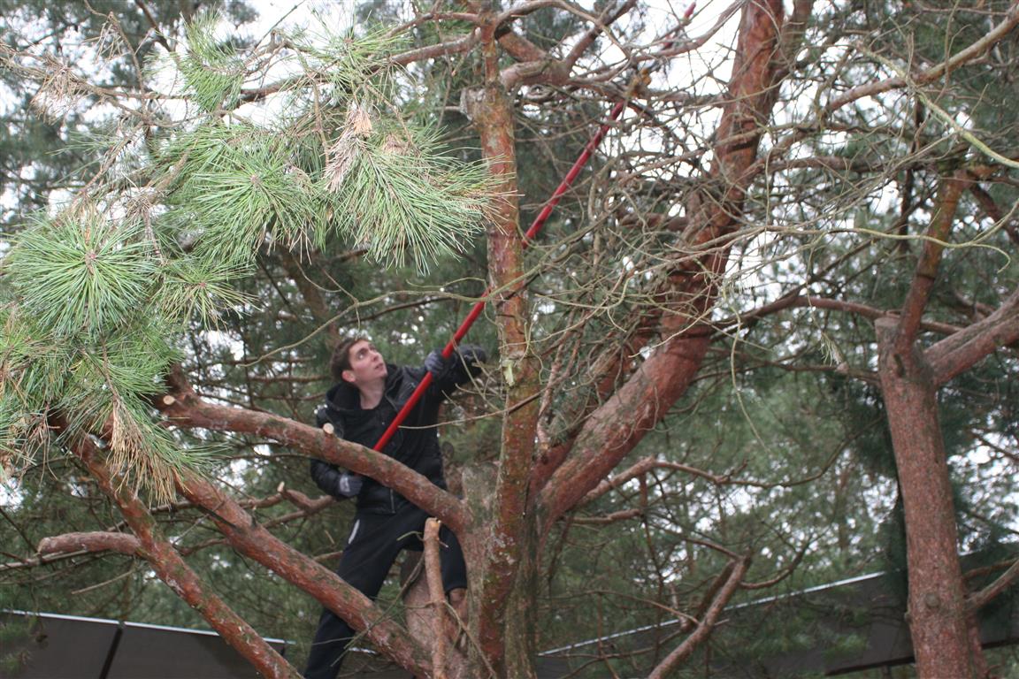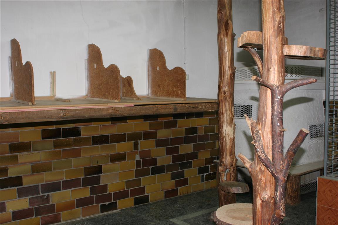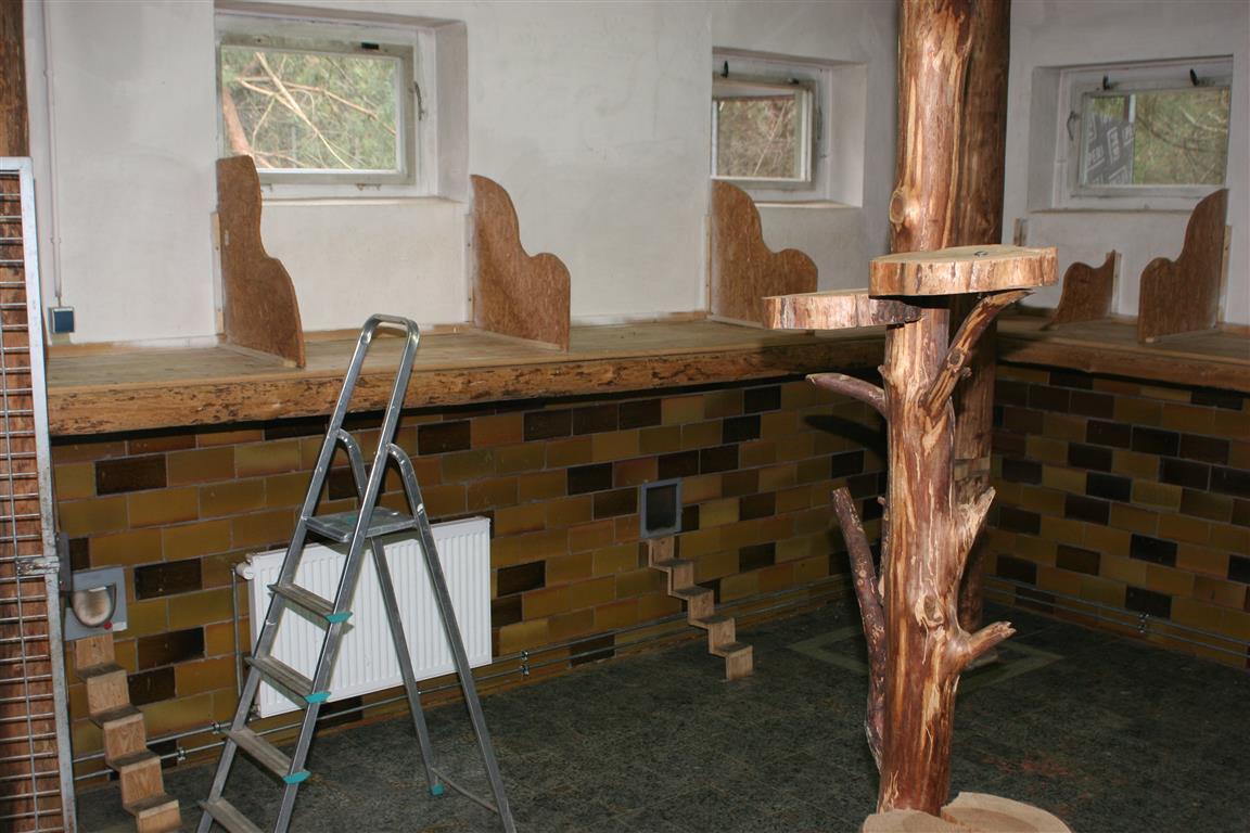 Die Kiefern in den Außengehegen wurden eingekürzt, denn sie dienen als Kletterbäume. Manch eine Katze könnte sich damit rausschwingen, wenn sie zu hoch würden.