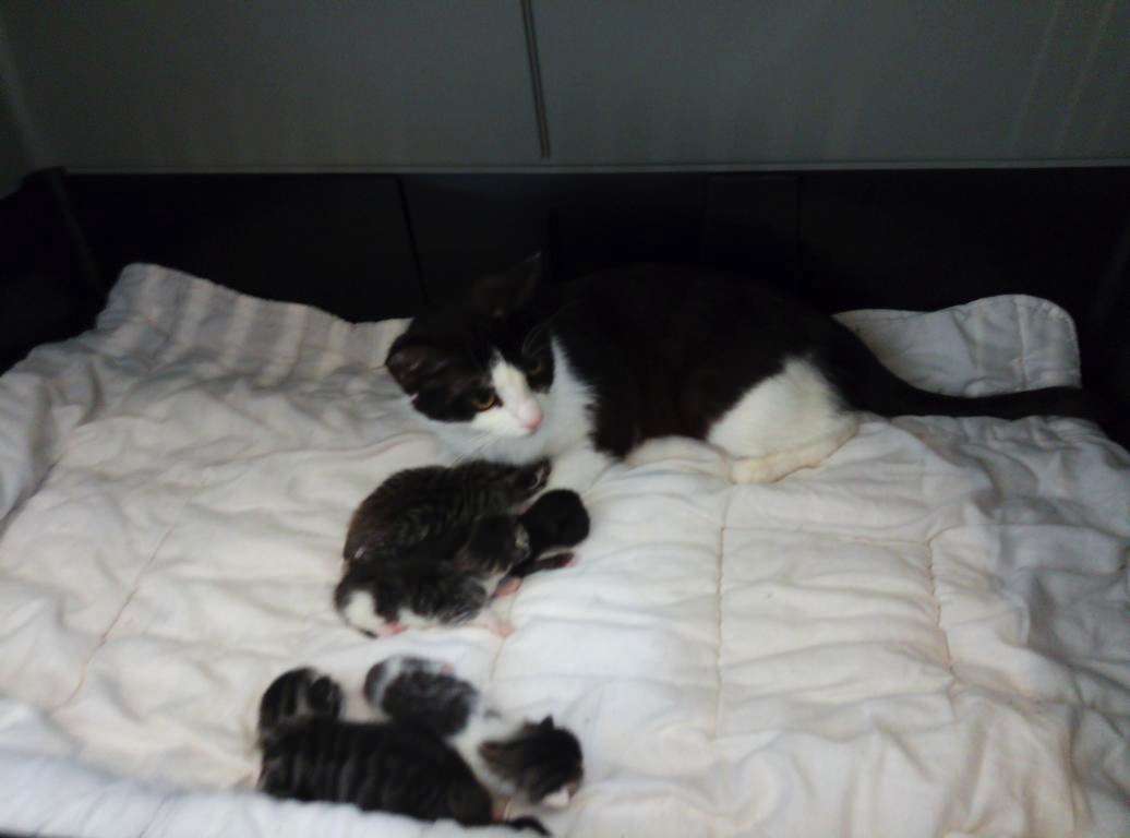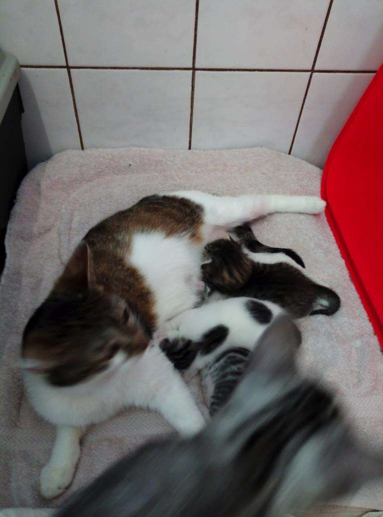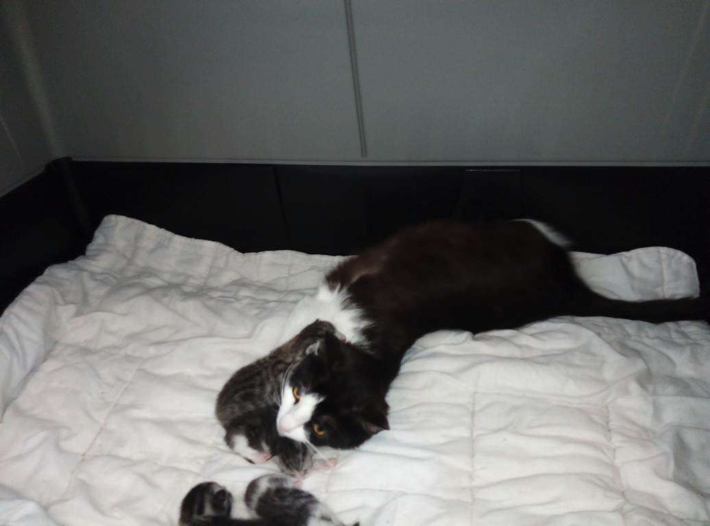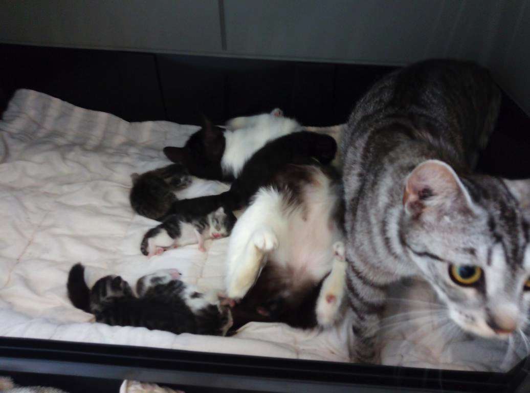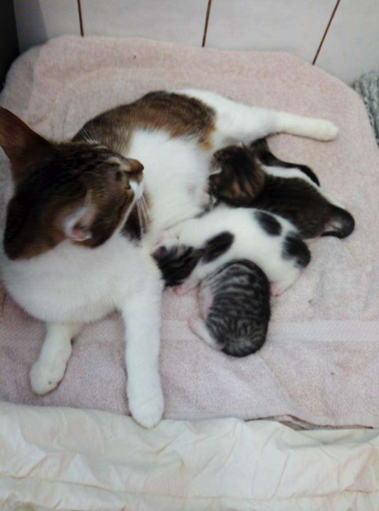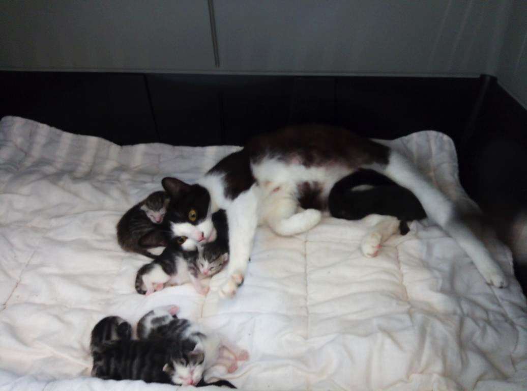 Nur drei Tage später wurde es endgültig zur Gewissheit, dass die dicken Bäuche der Kätzinnen nicht auf Überernährung zurückzuführen waren.