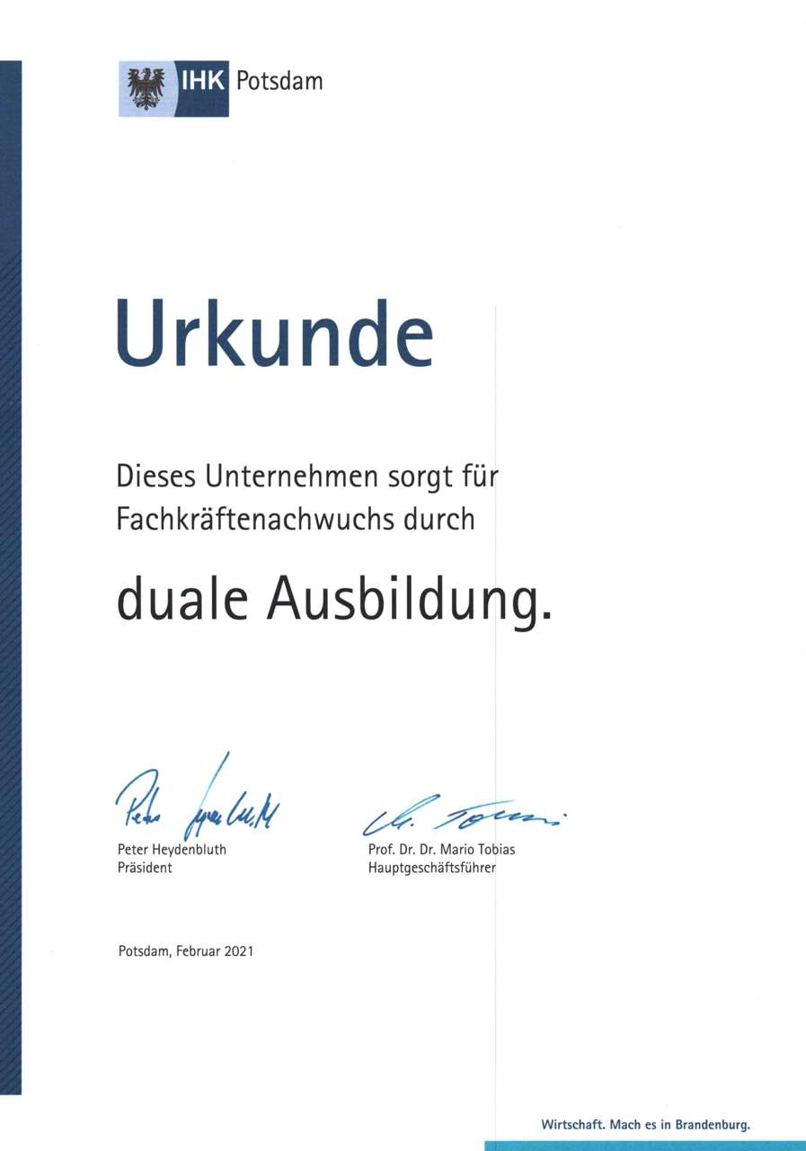 Investition in die ZukunftAuch zum nächsten Lehrjahr planen wir wieder die Ausbildung von ein oder zwei Lehrlingen.