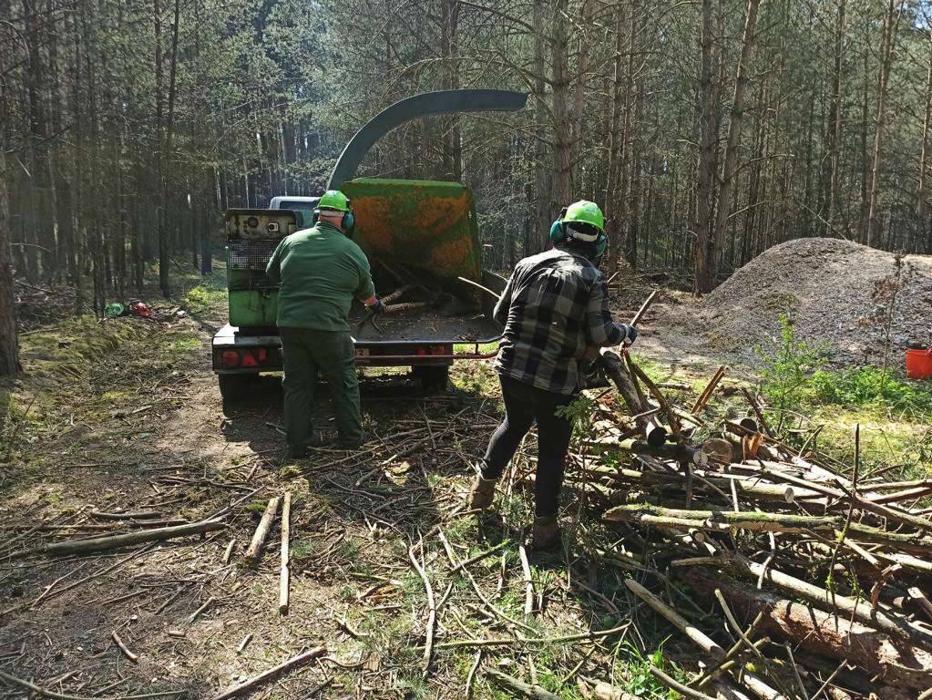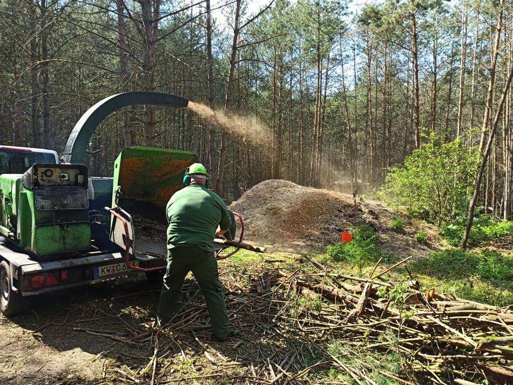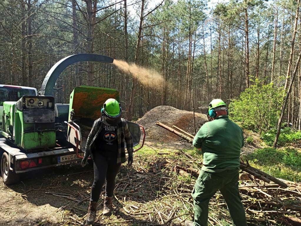 Die Holzschnitzel werden wir als Humusdecke ausbreiten. Damit wird auch die Feuchtigkeit besser im Boden gehalten.