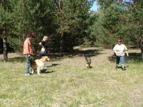 Unserem Angsthasen Charly ist die Sache dagegen noch nicht ganz geheuer. Er schaut erst einmal aus sicherer Entfernung zu. Tierfreundin Simone trainiert unsere Hunde gemeinsam mit ihrer Hündin Janka. Behutsam übt sie auch mit Charly, der sich an Jankas Gelassenheit orientieren kann.