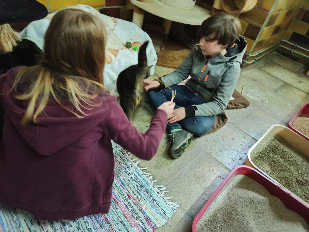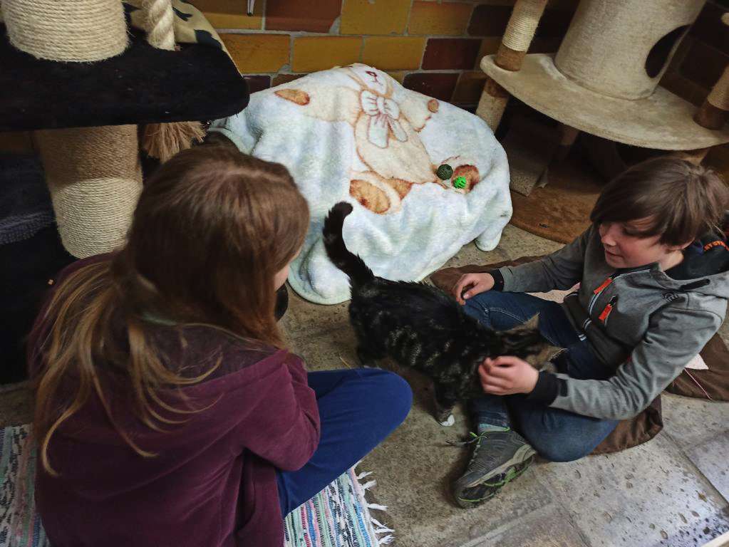 Lea-Sophie und Sven nutzten die Zeit natürlich auch für Gassigänge mit Hunden. Auch eine Spiel- und Schmusestunde mit den Katzen gehörte zum Programm.