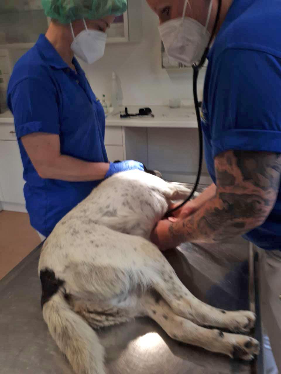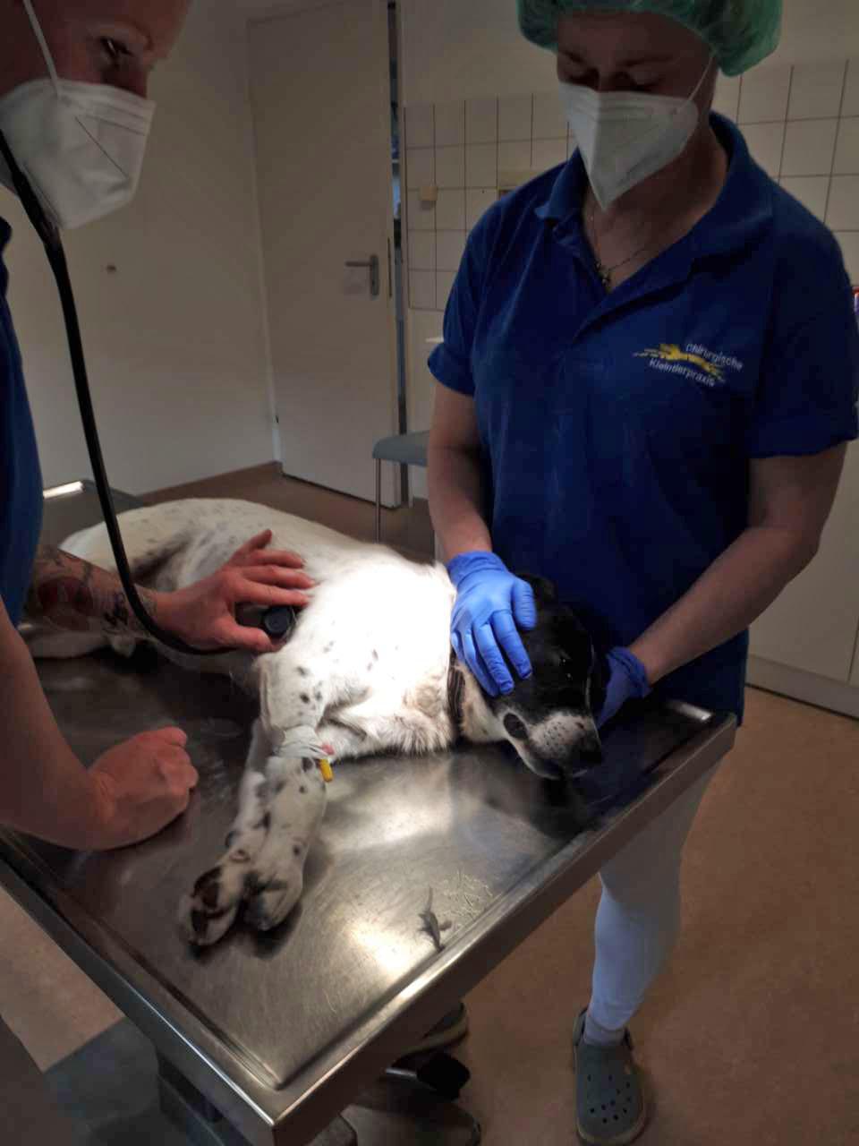 Wir meldeten ihn bei einem Chirurgen in Berlin an, um die Geschosse entfernen zu lassen. Der Tierarzt fertigte mehrere Röntgenaufnahmen an und entdeckte: 10 Geschosse! In Worten: ZEHN. Und eines davon sogar im Kopf.😭 Wir waren fassungslos.