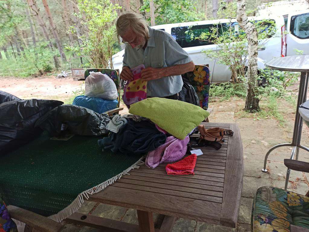 Dafür haben wir auch Decken und Leinen sortiert, ob noch was dabei ist, was wir mitgeben können.