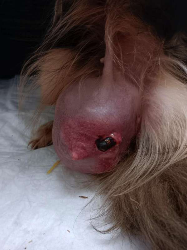 Eine Hündin hat einen Tumor, der über 10 cm groß ist. Dabei wiegt die kleine Hündin nur 7 kg.