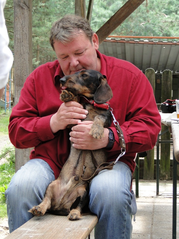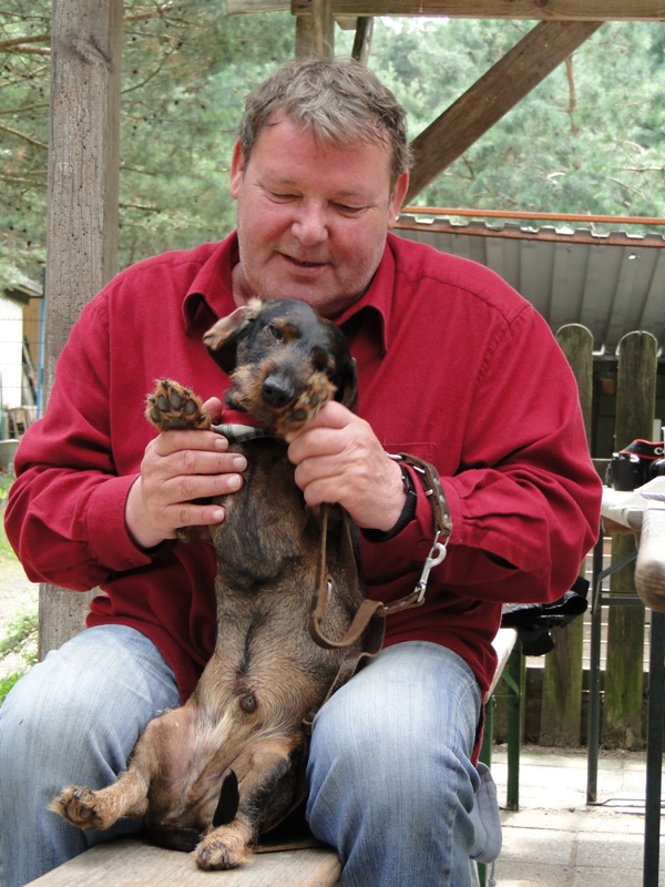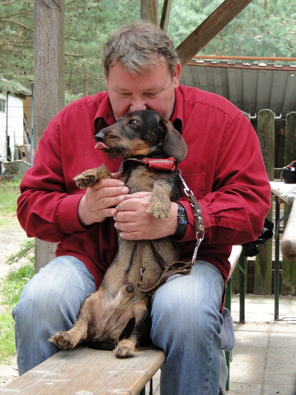 Walter Plathe erschien in Begleitung seines Dackels Polonius. Dieser ist immer mit von der Partie - egal, wo Herrchen zu tun hat. Auch abends im Theater wartet Polonius hinter der Bühne.