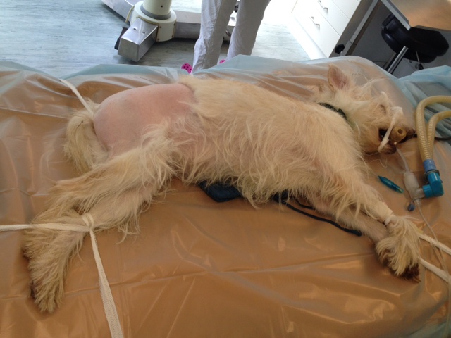 Aber da Felipa das Hinterbein nicht ordnungsgemäß benutzen kann, musste sie also nun erst dort operiert werden, damit sie hinten auftreten kann, wenn das andere Vorderbein operiert wird.