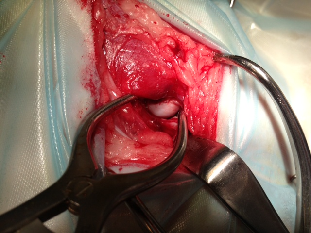 Also hatte Felipa heute (01.08.) ihre 2.OP - allerdings wie gesagt ganz anders als geplant. Der Chirurg entfernte den kaputten Knorpel, wie man auch als Laie an den Aufnahmen gut erkennen kann.