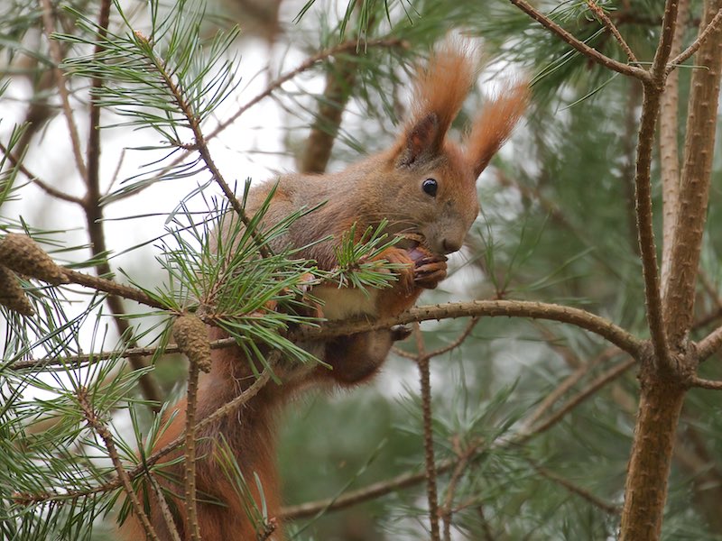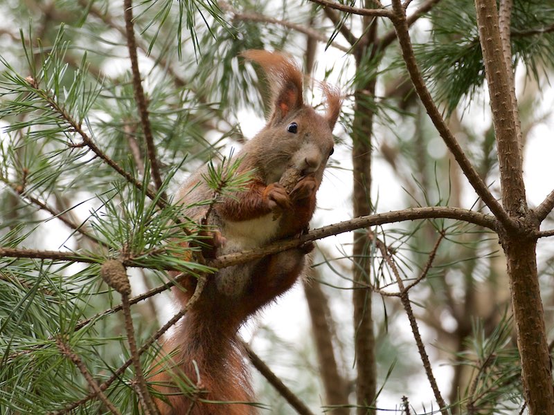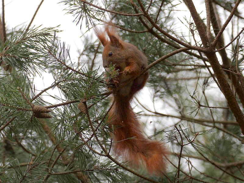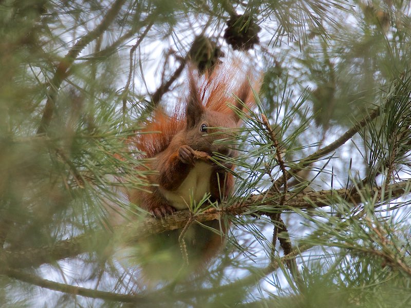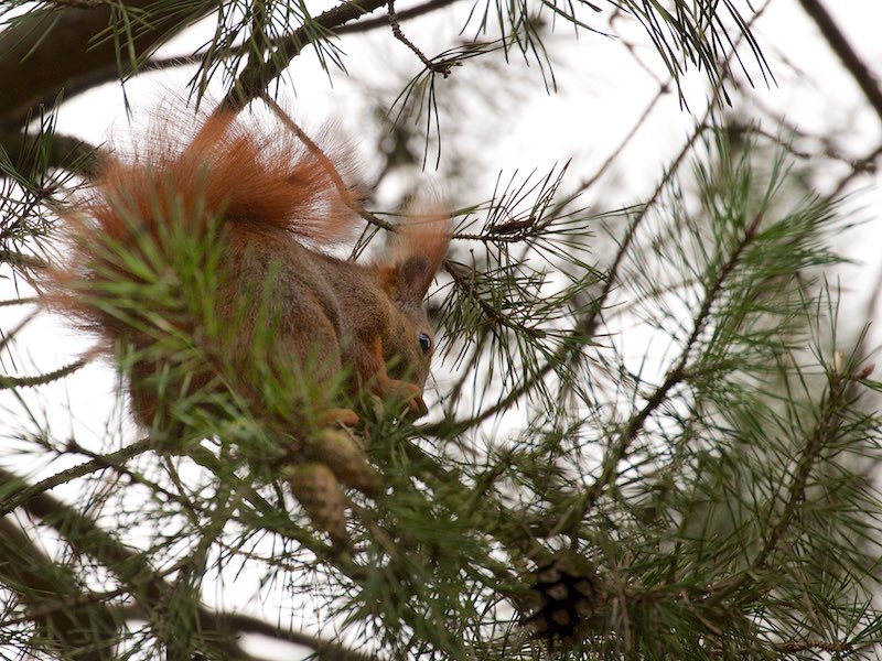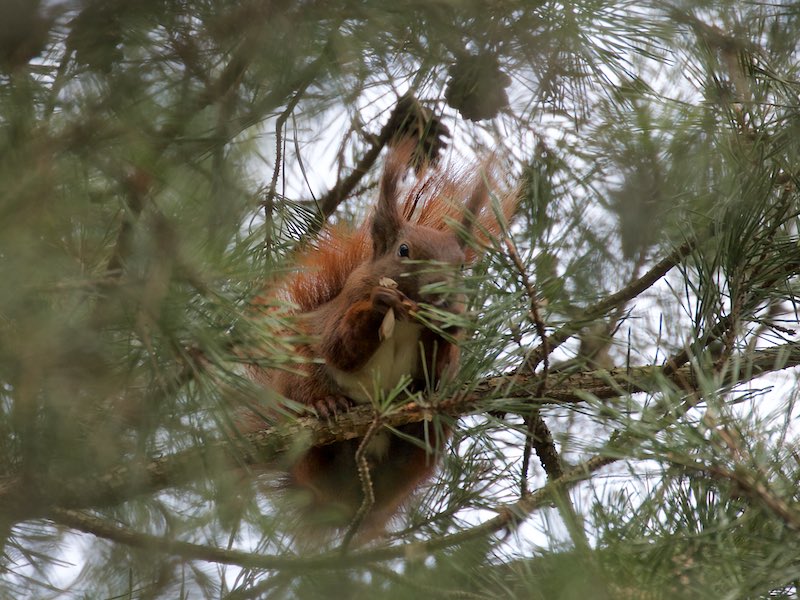 Wer genau hinsieht, kann erkennen, dass es sogar zwei Eichhörnchen sind. Icke hat sich nämlich verliebt und kommt seit ein paar Wochen nur noch mit Partnerin. Beide toben durch's Geäst, dass es eine Freude ist.