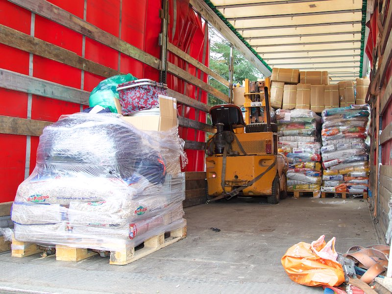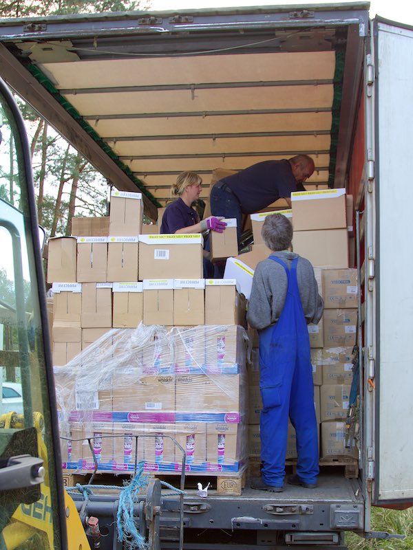 Etliche Kilo Welpenmilchpulver sind an Bord - ebenso 800 kg Waschpulver. Das ist fast eine Tonne und dürfte selbst in der SMEURA ein paar Tage reichen.