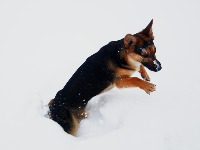 Ihre anfängliche Schüchternheit beim Gassigehen, ist wie weggeblasen. Sobald man die Leine nimmt, kommt sie schwanzwedeln auf einen zu und spielt draußen eifrig mit anderen Hunden, am liebsten mit den ganz großen. Trotz ihrer kurzen Beine hängt sie auch die Großen durch schnelle Kehrwendungen im Handumdrehen ab. Kleinen Kläffern geht sie lieber aus dem Weg. Nur schnell an uns vorbeilaufende Gruppen von Menschen sind ihr noch nicht so geheuer.
