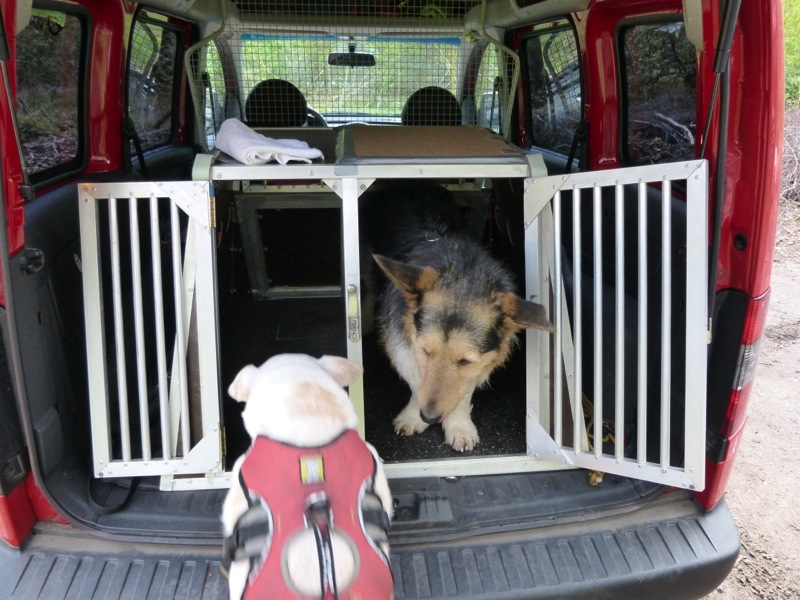 Autofahren ist für ihn das Größte: Wenn ein Auto im Hof steht und die Heckklappe ist offen ist Leo immer leicht zu finden!