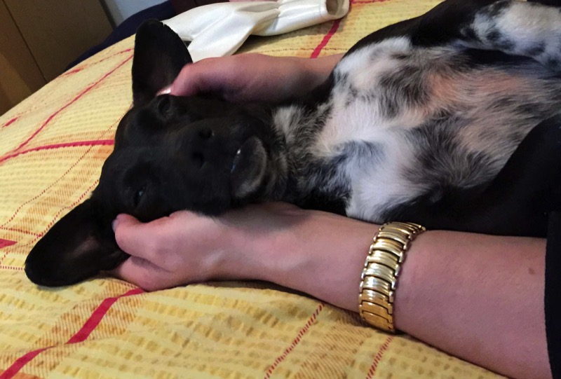 Nuna ist nun schon eine Woche bei uns und hat sich sehr gut eingelebt. Zunächst hatte sie Durchfall, wahrscheinlich die Aufregung und die Nahrungsumstellung. Das ist mit ein bißchen verdünntem schwarzem Tee schon viel besser geworden. Die Augen waren etwas entzündet, aber mir Augentropfen wird es besser. Nächste Woche stellen wir sie unserem Tierarzt vor und gehen langsam das Problem mit dem Zahnstein an. Sie ist sehr aufgeweckt, fröhlich und unendlich verschmust. Ein richtiger Schatz. Und sie lernt ungeheuer schnell. Sie kann schon 'Steh' an der Straße, 'Fuß' über die Straße, 'Sitz' und versteht perfekt, was 'Nein' bedeutet, auch wenn sie nicht immer einsieht warum. Eben ein Dackelchen. Wir gehen viel spazieren, auch mit der Hündin zusammen, die mit im Tierheim war. Nuna orientiert sich an ihr, besonders beim Straßenverkehr, es gibt ihr Ruhe. Und im Flamencostudio kommt sie auch gut klar. Beim Kastagnettenunterricht, oder wenn ich übe, geht sie in ihr Körbchen und schläft mal eine Runde, beim Flamenco versucht sie noch mit zu tanzen, aber das das nicht geht, lernt sie bestimmt ganz schnell.