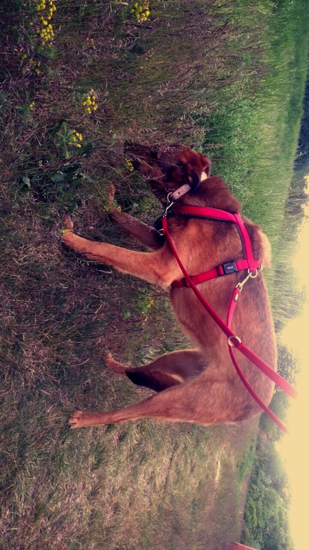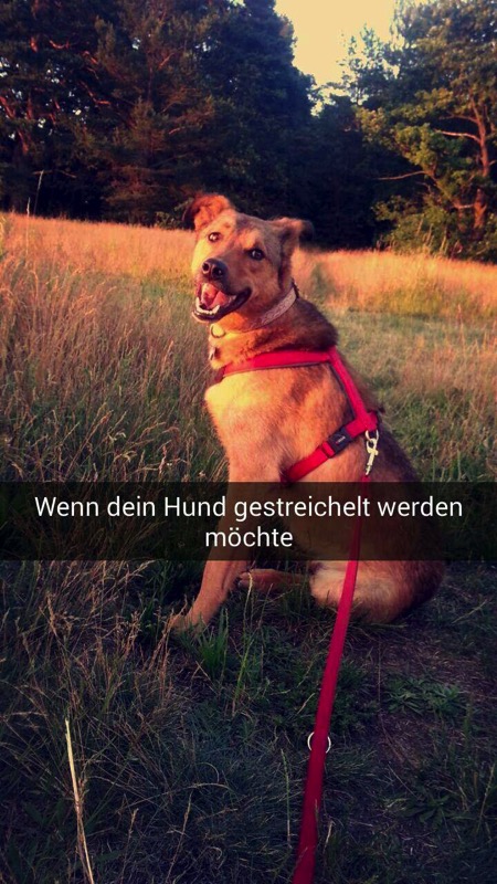 Nach gut einem Monat bei meiner neuen Familie möchte ich euch mal ein Lebenszeichen von mir schicken. Ich fühle mich hier pudelwohl:täglich lange Spaziergänge ( inklusive Kuschelpausen ), lecker Futter und nen total weiches Bettchen  (das ich weder umräume noch anknabbere ). Jeden Tag lerne ich etwas Neues, auch wenn mir meine Ängstlichkeit manchmal im Weg steht,aber meine beiden Frauchens und die Hausmiezen sind sehr geduldig mit mir.
