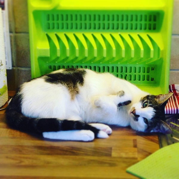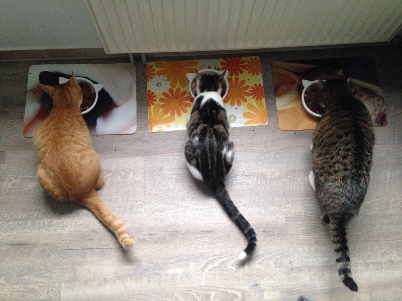 Im neuen Haus fühlten wir uns sofort wohl. Schnell waren Lieblingsplätze entdeckt. Ich (Mila) finde das Waschbecken in der Küche einfach toll und spannend. Vor allem wenn der Wasserhahn tropft dann könnte ich Stunden davor verbringen. Und die Abzugshaube ist der schönste Aussichtspunkt im ganzen Haus. Im Keller steht eine große Badewanne in der ich immer wie wild rumtobe. Mein Kumpel der Theo hat auch seine Eigenarten. Er springt immer ganz früh wie wild auf dem Bett rum während unsere Dosis noch schlafen. Es hat jedenfalls Wirkung weil es wenig später lecker Futter gibt. Ansonsten jagt er sehr gern wie wild durch das ganze Hause, achso und er liebt es Fliegen zu jagen.