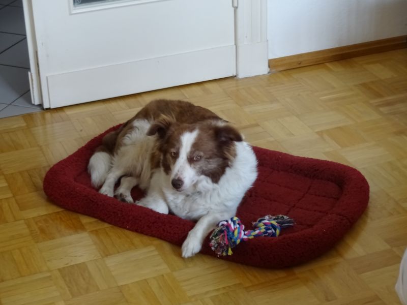 Seit gut 3 Wochen lebt Mancy, die nun den Namen Biggi trägt, bei uns in Potsdam. Sie hat uns als neues Rudel ganz schnell in ihr Herz geschlossen und folgt uns so toll überall hin, dass wir sie problemlos ohne Leine laufen lassen können. Sie bekommt viele Streicheleinheiten, hört schon super auf Grundkommandos und hat auch mit unserem kleinen Baby keinerlei Probleme. Wenn er mal lauter schreit, geht sie in den Flur in ihr Bettchen, wo sie immer ungestört ist und ihre Ruhe hat, wenn sie sie braucht.