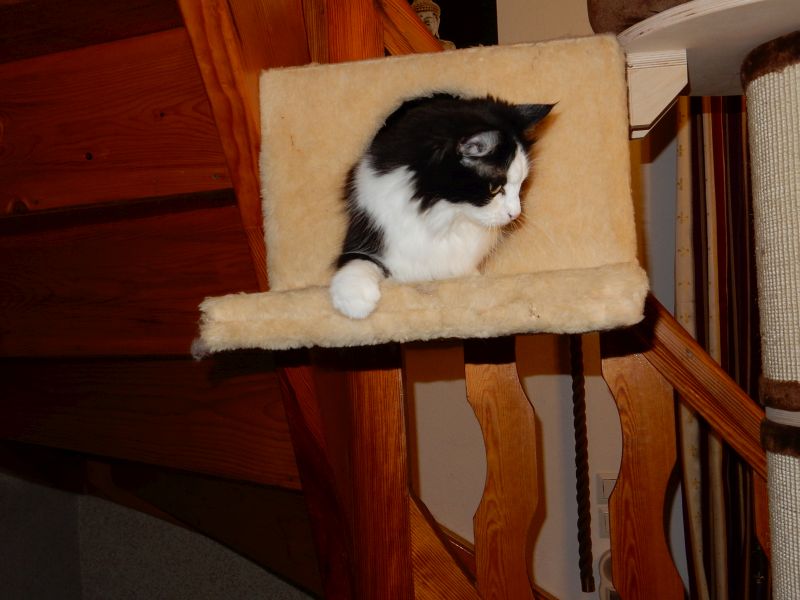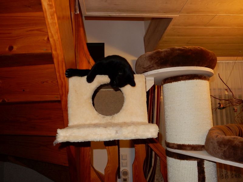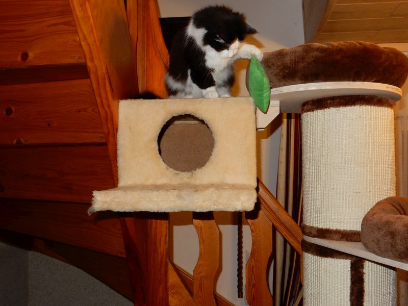 Er hat uns ein super Kratzbaum geschenkt, der sofort erkundet wurde!