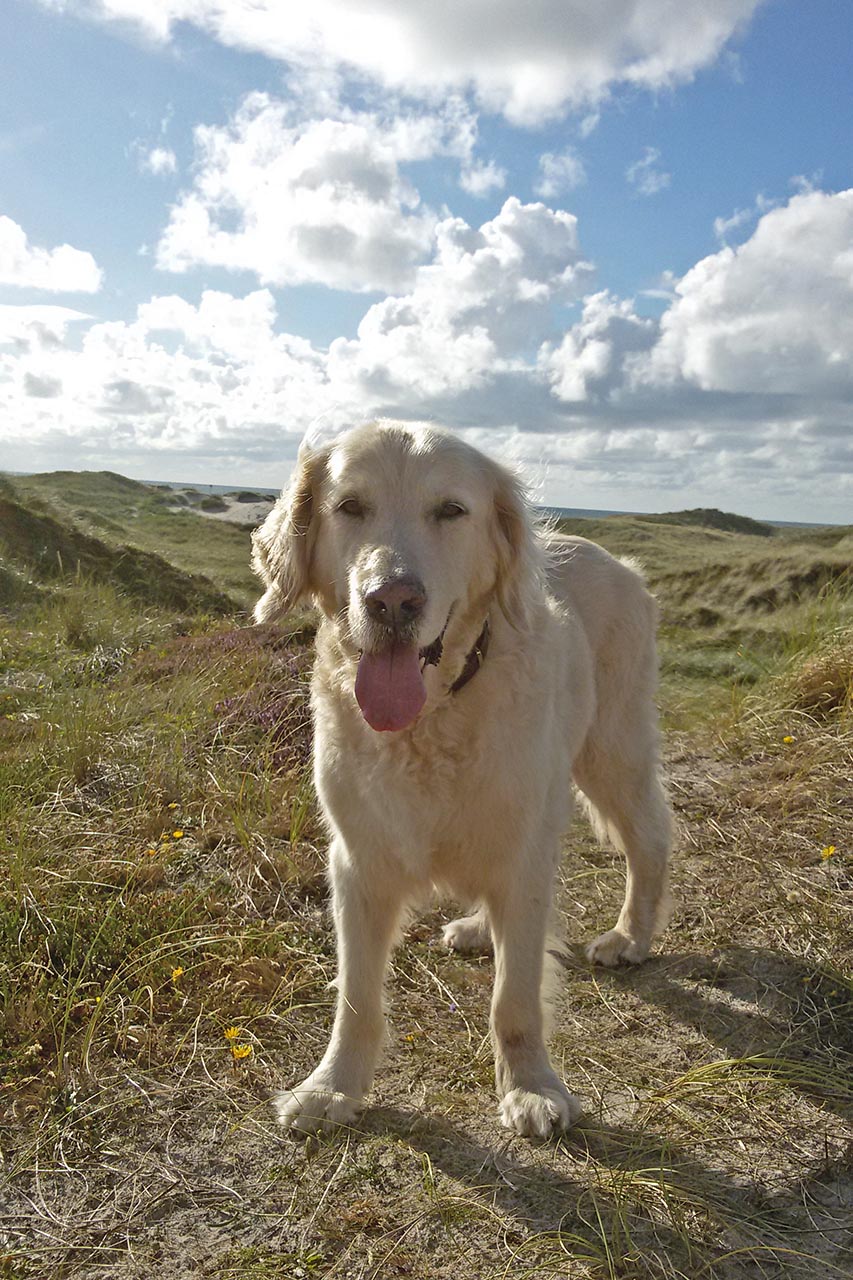 Hier kommen ein paar sommerliche Grüße von Buddy!! Wir waren gerade in Dänemark im Urlaub, es war toll, Buddy fühlt sich dort sehr wohl. Die Temperaturen kommen ihm entgegen (18Grad) und Haus mit Garten OHNE Treppen ist natürlich herrlich. Buddy ist jetzt 12,5 Jahre alt!! Er ist sehr gemütlich geworden, schläft viel und lässt sich bekuscheln. Die drei Stockwerke schaffen wir mit einer Tragehilfe, das klappt gut. Sonst spaziert er sehr gemütlich durch seinen Kiez. Wir freuen uns jeden Tag über diesen Hund, seit fast 4 Jahren ist er jetzt bei uns. Viele Grüße an alle und im Anhang ein paar aktuelle Fotos.